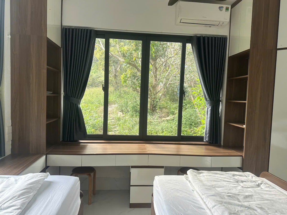 Dette luksuriøse og koselige studioet tilbyr alle fasilitetene du trenger for en avslappende familieferie på Phu Quoc Island. Dette studioet ligger i en rolig tropisk skog, litt under 2 km fra Ong Lang Beach, og gir en minneverdig opplevelse. Nyt moderne kjøkkenapparater og en grillplass i hagen med fruktbærende trær. Start dagen med en kopp kaffe, soloppgangen og den herlige lyden av fuglene som synger. Vi er sikre på at du vil ha en spennende og avslappende opplevelse i dette studioet.