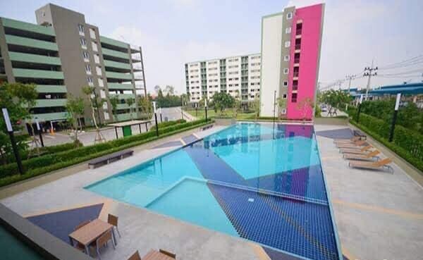 Dette unike stedet har en helt egen stil. Near Rangsit university, Bangkok University, Thammasat University, Future Park Mall Strøm, vann, trådløst nettverk. Inkludert i regningen allerede. Et av de beste lokalsamfunnene i området for unge voksne Basketball, volleyball, fotballbaner, basseng, parker og butikker som 7-11 på stedet. Full mini-mall ved inngangen til leilighetsparken. Inkludert Lotus
