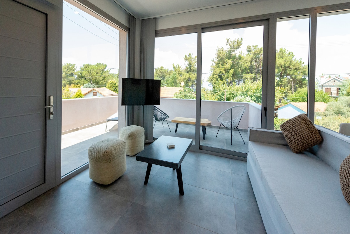 En koselig leilighet kun 300 meter fra Thassos havn. Den tilbyr et fullt utstyrt kjøkken, en romslig stue med spiseplass, et koselig soverom med en kingsize-seng og et helt nytt moderne bad med dusj. Alle apparater, inkludert vaskemaskin, oppvaskmaskin, stekeovn og kjøleskap, er nye. Med tre balkonger er leiligheten fylt med naturlig lys hele dagen. Gjestene har gratis trådløst nettverk og Netflix. Parkeringsplass er alltid tilgjengelig. Oppdag mer på glyfoneriholidays(dot)com.