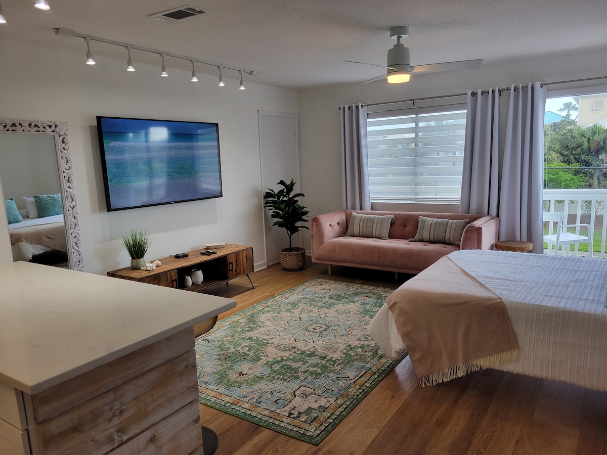 Helt ny ettromsleilighet komplett oppsatt for par eller liten familie på tre. Det perfekte stedet for å feire et spesielt øyeblikk, slappe av med din kjære og skape minner. Midt i sentrum av Destin, ett minutt med bil til den offentlige stranden, to minutter med bil til havnebyen. Blomster, kort, vin er tilgjengelig for overraskelse (bare spør meg). INGEN RØYKERE ELLER FESTING INNE PÅ STEDET MITT. Les andre detaljer å merke seg!IKKE TA MED EKSTRA VENNER INNENFOR, og les ANDRE DETALJER Å MERKE SEG.