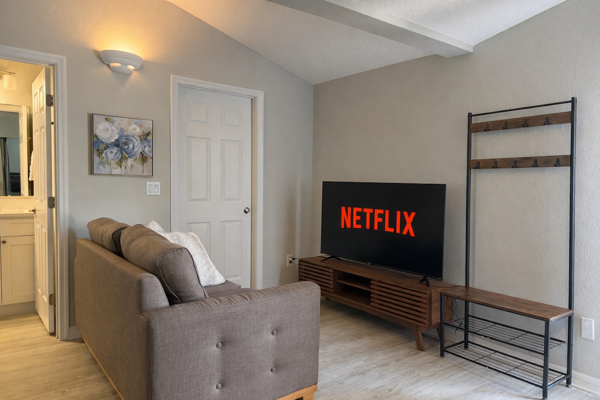 Denne nyoppdaterte leiligheten ligger i det historiske distriktet Ocala i Florida, i nærheten av restauranter, shopping og lokale attraksjoner. Dagsturer til Silver Springs (båtturer med glassbunn), turer til fullblodshestegårder og Rainbow Springs State Park er morsomme og enkle turer. Du kan også svømme med sjøkuer (sesongbasert) på Crystal River og selvfølgelig besøke de atlantiske strendene i Daytona, St. Augustine Tampa og Saint Pete, samt Orlando og Disney.