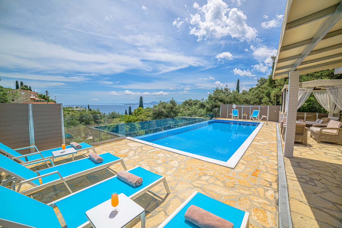 Villa Athos Korfu 1000 kvm, innendørs og utendørs basseng