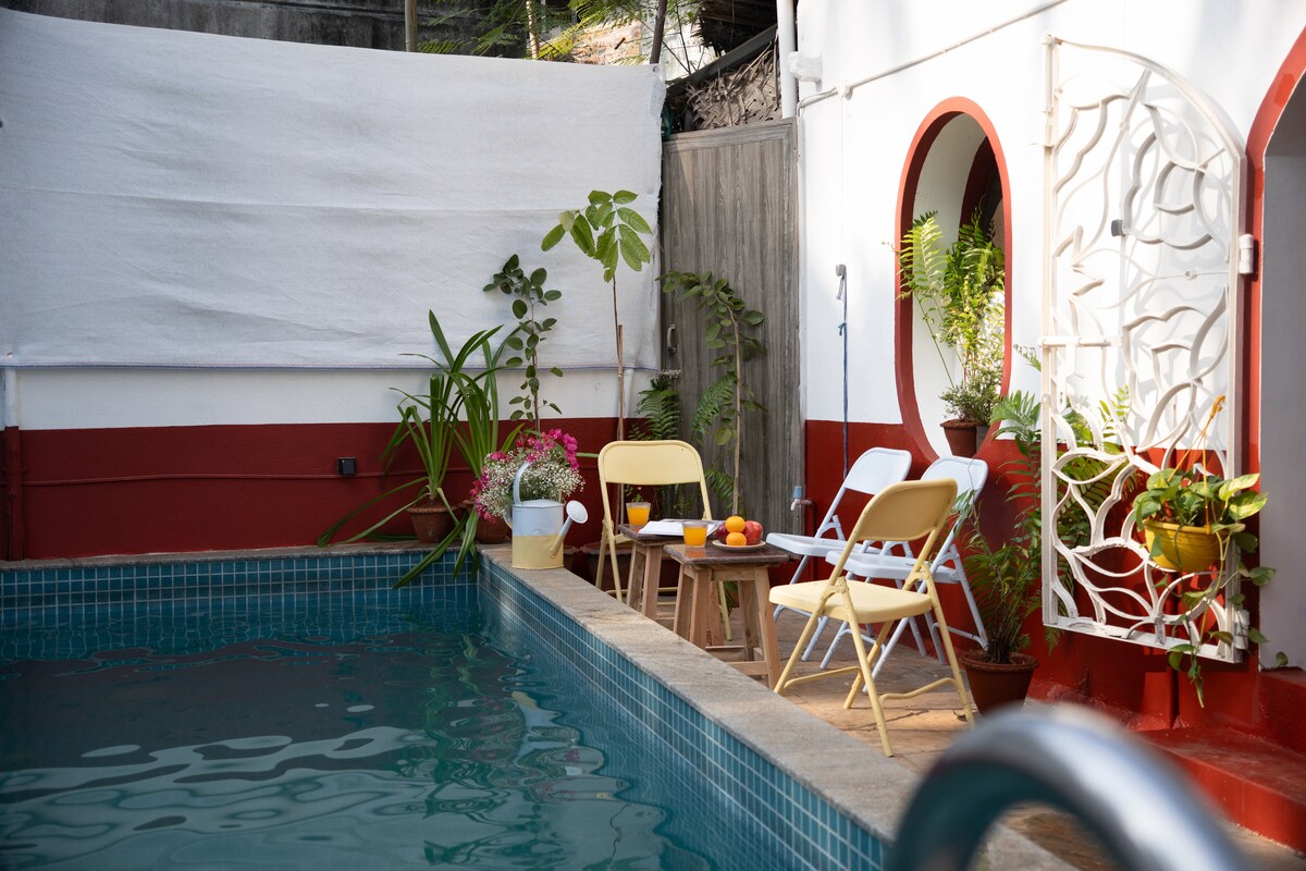 Der historisk sjarm møter lyden av havet🏡 Oppdag et tidløst feriested ved kysten i nærheten av Serenity Beach, bare 100 meter fra kysten. Denne strandvillaen i historisk stil har en 3BHK-løsning med gammeldags preg og moderne bekvemmeligheter, og den har godt med plass til 6–8 gjester. Nyt et luftig interiør, et privat svømmebasseng og en avslappet strandstemning – perfekt for familier, venner og de som ønsker en sjelelig ferie ved sjøen med ro, komfort og kystsjarm.