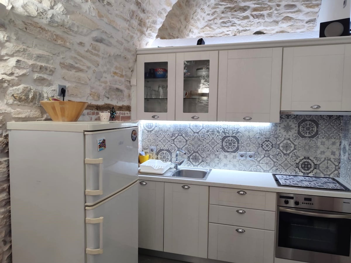 Velkommen til hjemmet vårt, som er ideelt for opptil fire gjester og én baby. Fra balkongen og vinduene i leiligheten kan du nyte utsikten over de ikoniske vindmøllene i Chios, samt havet. Bare ti minutters gange fra sentrum av Chios, og du har enkel tilgang til restauranter, kaféer og supermarkeder. Det er gratis gateparkering rett overfor leiligheten.