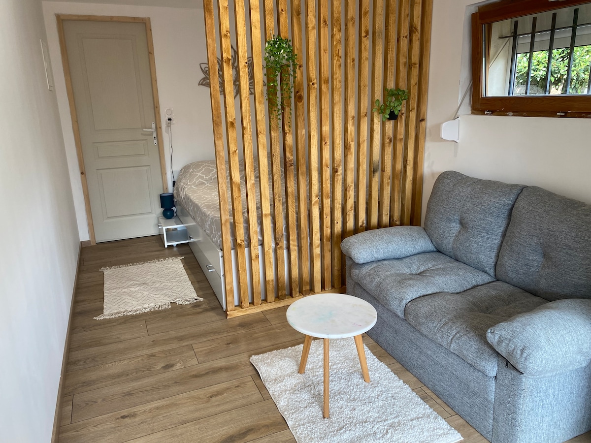 Appartement classé 4* de 40m2 complètement indépendant meublé équipé tout est neuf & de qualité, au calme, avec entrée indiv Lits faits à l'arrivée avec produits d'hygiène Lavabo & douche & WC séparés 1 Chambre: • 12m2: 1 lit queen size 160cm ; • 8m2 dressing & sdb Salon&cuisine 20m2 avec machine NESPRESSO Terrasse privée et accès direct au Jardin et au Jacuzzi Parking gratuit et privé