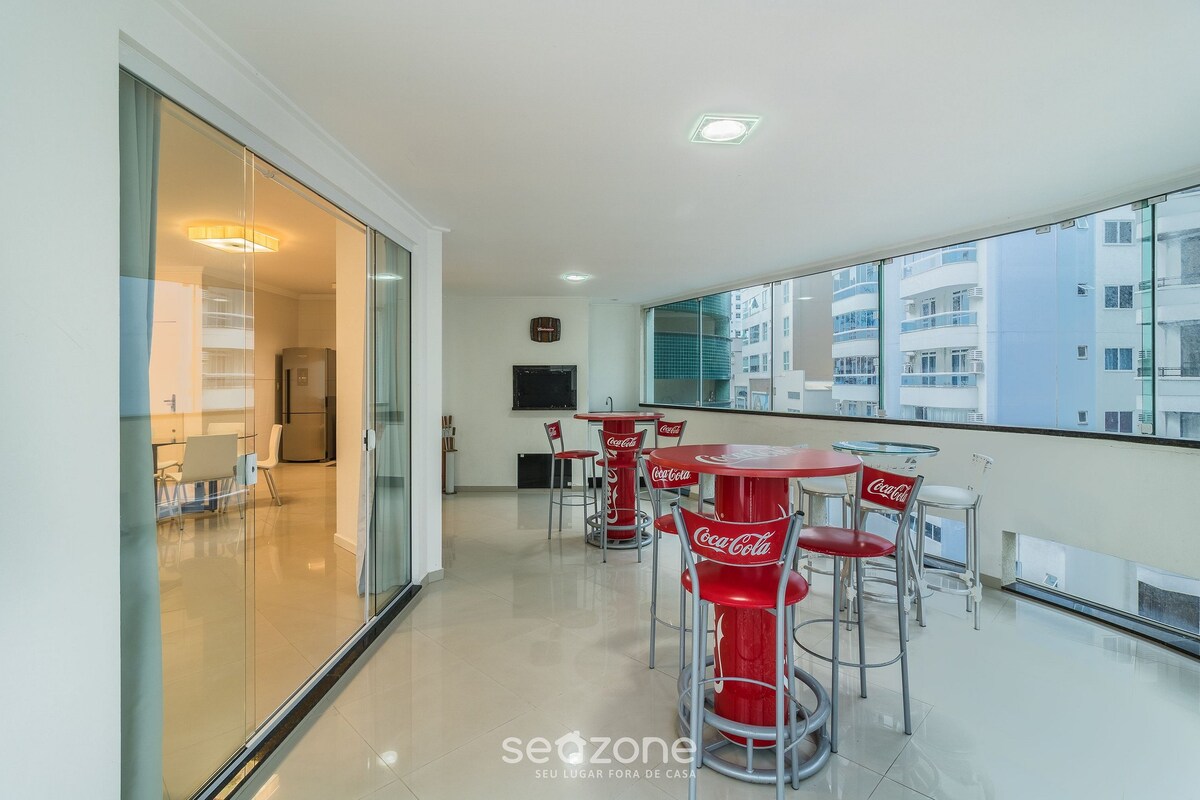 Apto Moderno 400m Praia | Sacada c/Churrasqueira