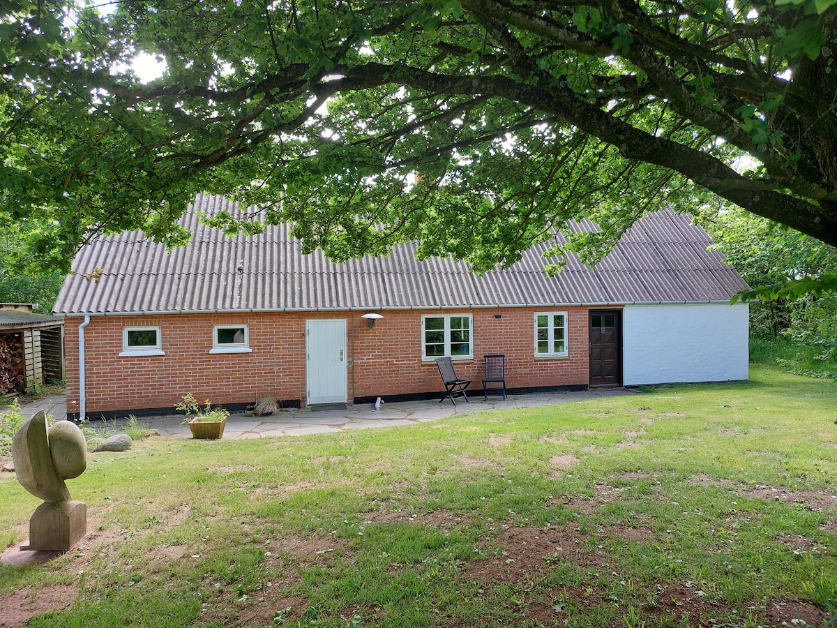 Liker du natur og fred og ro? - og SAUNA Nyt det enkle livet i et sjarmerende og idyllisk daghjem på landet. Huset ligger midt i det vestjyske fjordlandskapet like ved det brølende Nordsjøen. Huset har plass til 5 personer i to rom. Eldre primitivt bad, fint kjøkken med gasskomfyr og en hyggelig og romslig stue med vedovn. Hagen har SAUNA , peis og utsikt over mark og skog. Det enkle livet: ingen oppvaskmaskin eller vaskemaskin og ingen wifi: -) Velkommen