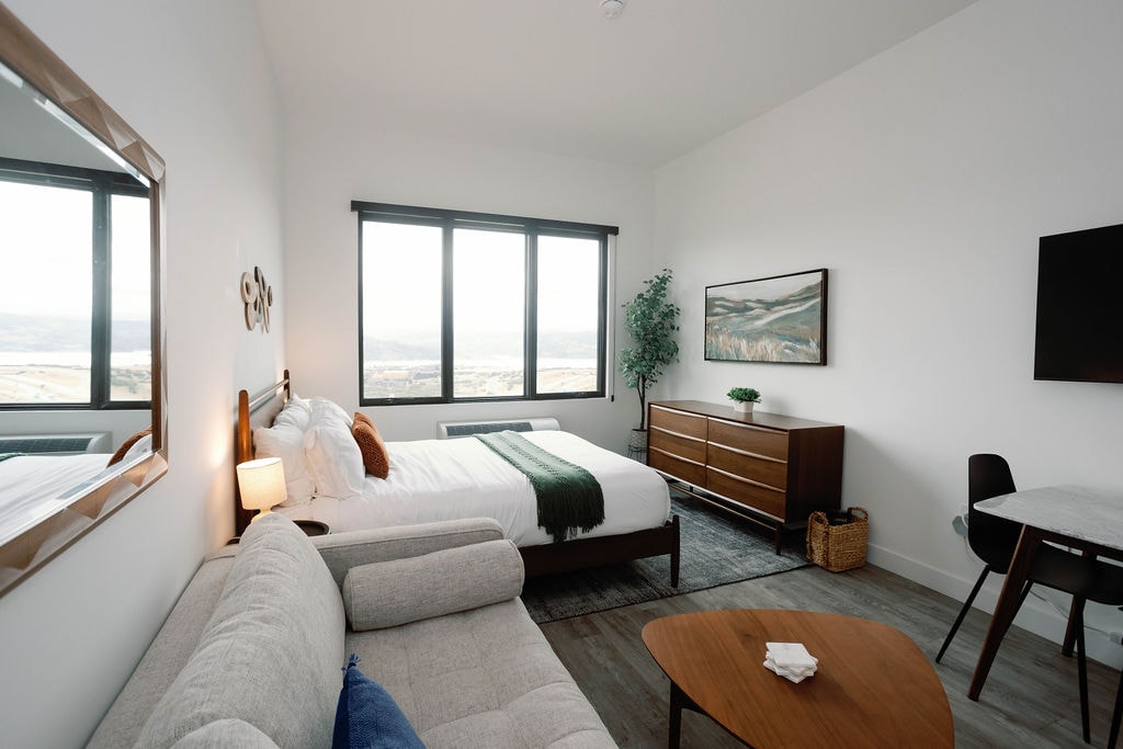 Vi vil gjerne være vertskap for deg i studioleiligheten vår med queensize-seng pluss queensovesofa for å få plass til fire komfortabelt. Tonnevis av naturlig lys og utsikt - ALLE vinduene har også fulle persienner for privatliv. Låst oppbevaringsskap for ski, sykler eller bagasje. Kjøkkenet er fullt utstyrt med matlagingsutstyr. Fellesskapet inkluderer plaskebrett, fotballbaner, lekeplass, strandpromenader og sykkelstier. Gratis transport i hele Park City via High Valley Transit.