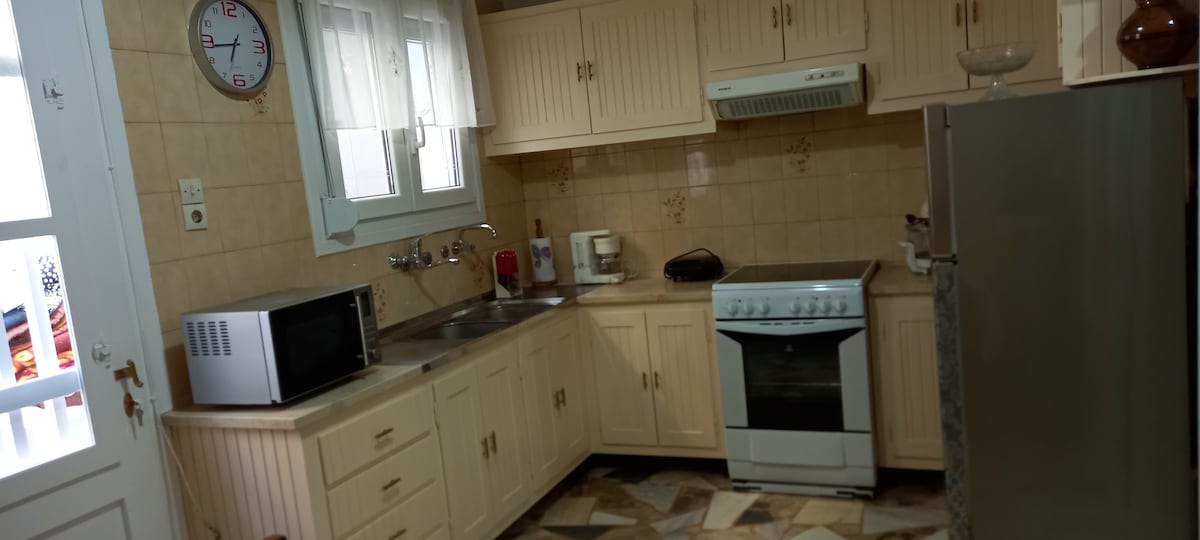 Leiligheten vår tilbyr et hyggelig opphold midt på øya, da alt er i nærheten, og du kan utforske det ved å gå. Besøk den vakre kirken Panagia Tinos og de vakre landsbyene. Den populære stranden Agios Fokas ligger bare ti minutters gange unna. I nærheten finnes det butikker, tavernaer og kafeer som smaker det lokale kjøkkenet og slappe av. Nyt ferien sammen med familie eller venner på denne fantastiske kykladiske øya!