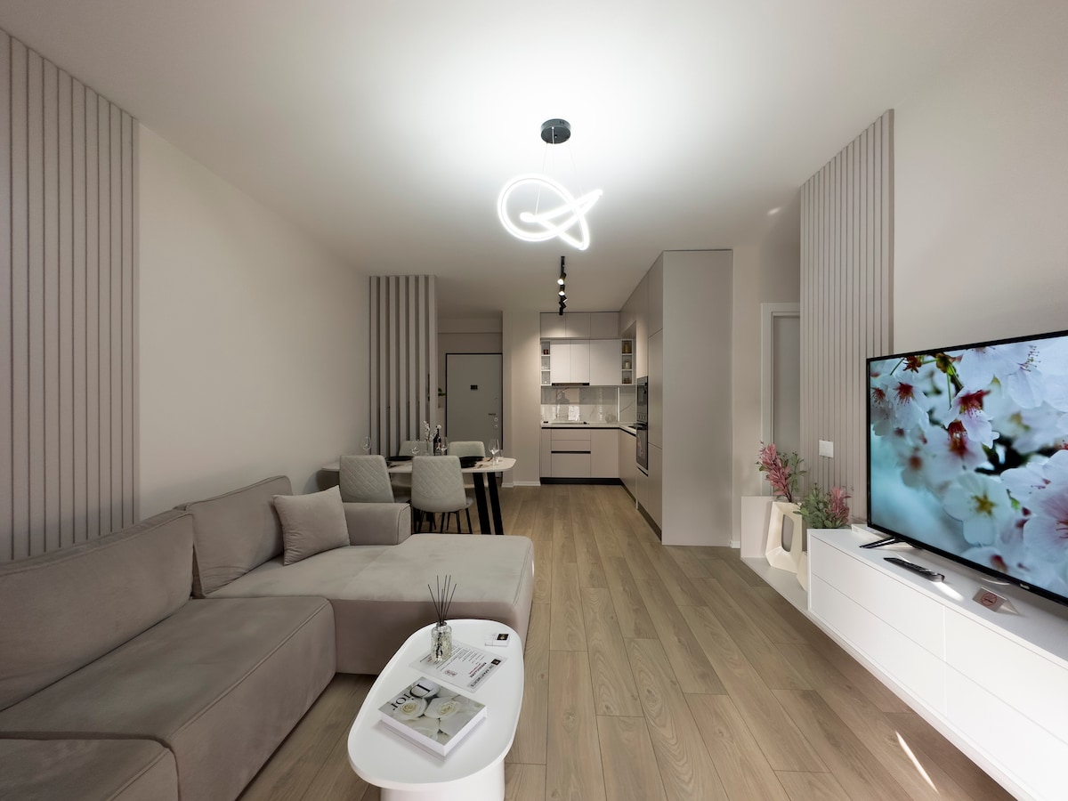 Amelia Apartment – Luxury Meets Smart Living in Tirana Velkommen til Amelia Apartment, et luksuriøst opphold i Tiranas New Boulevard, som tilbyr moderne eleganse, komfort og smart teknologi for å forbedre opplevelsen din. Området ligger i en helt ny bygning fra 2025, og er fortsatt under utvikling, og vi beklager oppriktig for den pågående konstruksjonen utenfor. Du kan imidlertid være trygg på at når du går inn, vil du bli fordypet i et overlegent, eksklusivt oppholdsrom designet for avslapning og bekvemmelighet.