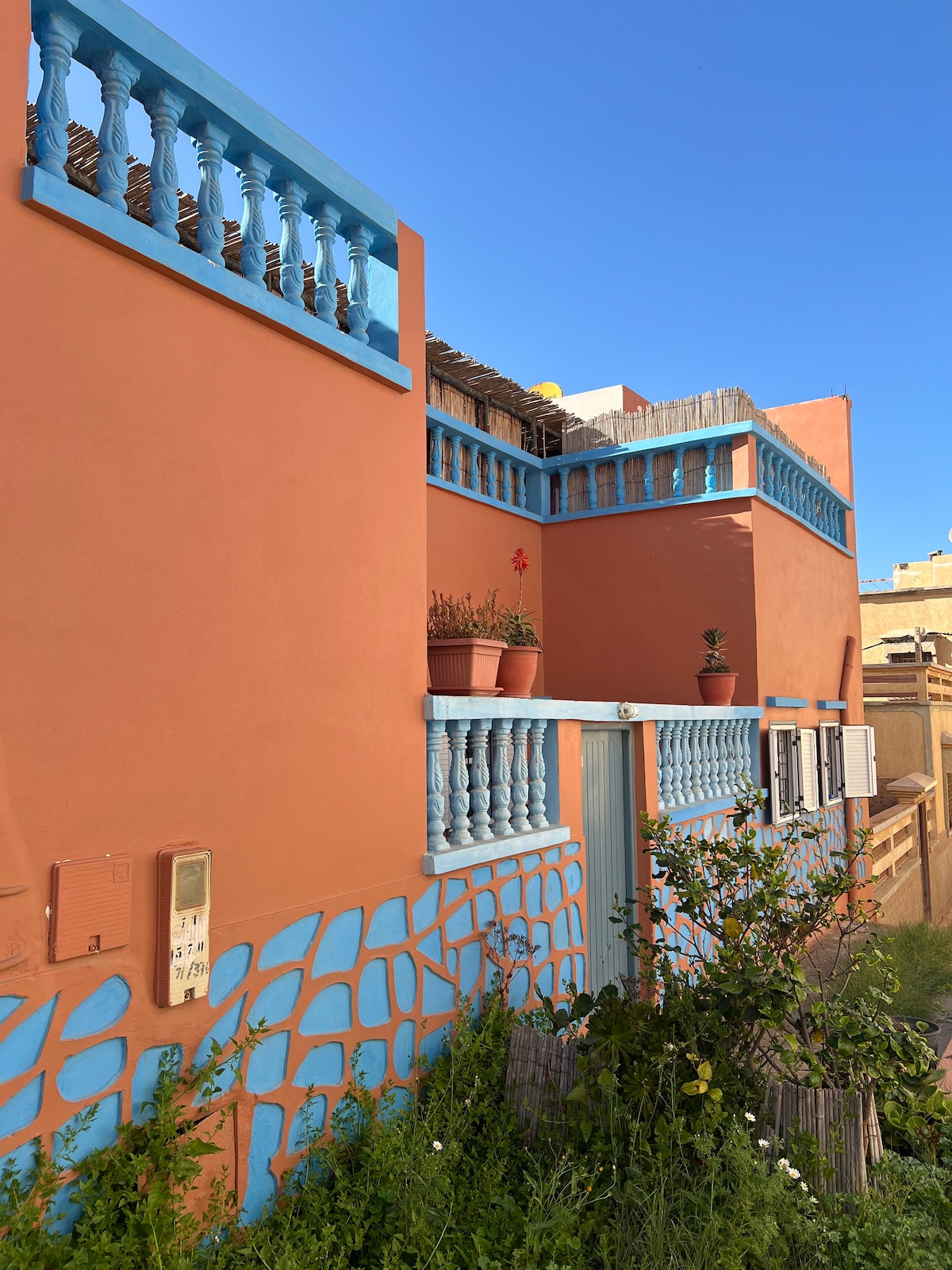Utforsk den renoverte leiligheten vår med to soverom i Tafraoute i Marokko. Nyt fantastisk spisestue på taket og fantastisk utsikt. Stilig interiør, fullt utstyrt kjøkken og komfortable senger garanterer komfort. Perfekt for par, familier eller små grupper som søker eventyr, avslapning eller kulturelle opplevelser. Oppdag den livlige lokale kulturen og turstiene, eller slapp av i denne pittoreske perlen. Skap minner i vårt eksepsjonelle sted. Bestill nå for en uforglemmelig Tafraoute-opplevelse.
