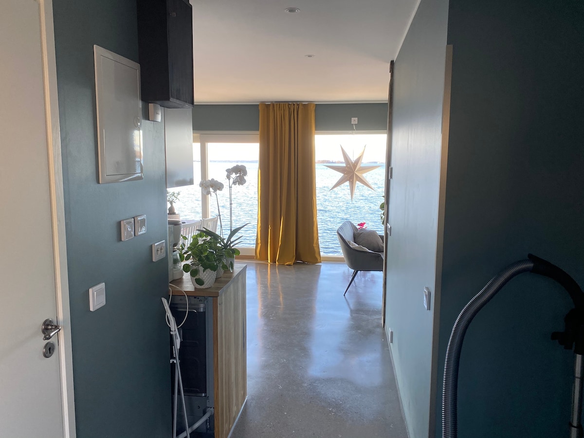Denne nybygde hytta med moderne interiør ligger på en klippe rett ved havet. Utsikten mot havet er fantastisk, med solnedgangen over skjærgården. Perfekt opphold for sommerferier, utforsking av naturen, fiske eller bare for et avslappende opphold. Et spa ved solnedgang ute på klippene kan bestilles mot et ekstra gebyr, samt sengetøy, håndklær og badekar. Henting på stedet for sel-safari/dykkerturer/båttur/RIB-båttur/jetski/flyboard/jetpack/tubing/mega sup osv.