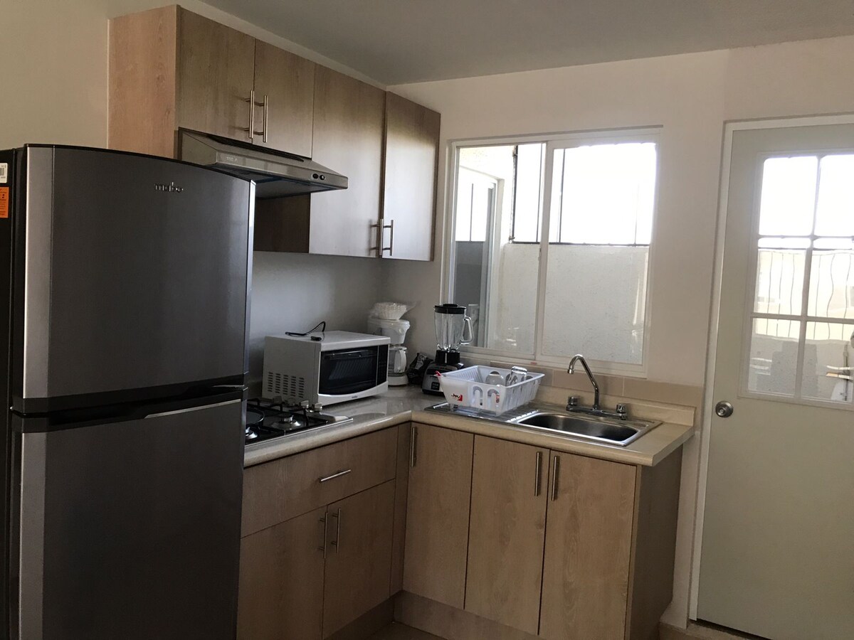 Nyt en VIP-leilighet i første etasje, sammen et privat boligkompleks i nærheten av Planta VW, Outlets Puebla, Val’ Quirico og kommersielt område. Den har to komplette bad og to rom, det viktigste med en king size-seng, TV med Netflix, walk-in-garderobe og komplett bad; og det sekundære med en køyeseng med to enkeltsenger. Luuna-madrasser og puter. Fullt utstyrt kjøkken og stue med sovesofa. Spisestue med 6 stoler. Trådløst nettverk. Vaskerom og privat hage med utemøbler for hvile.