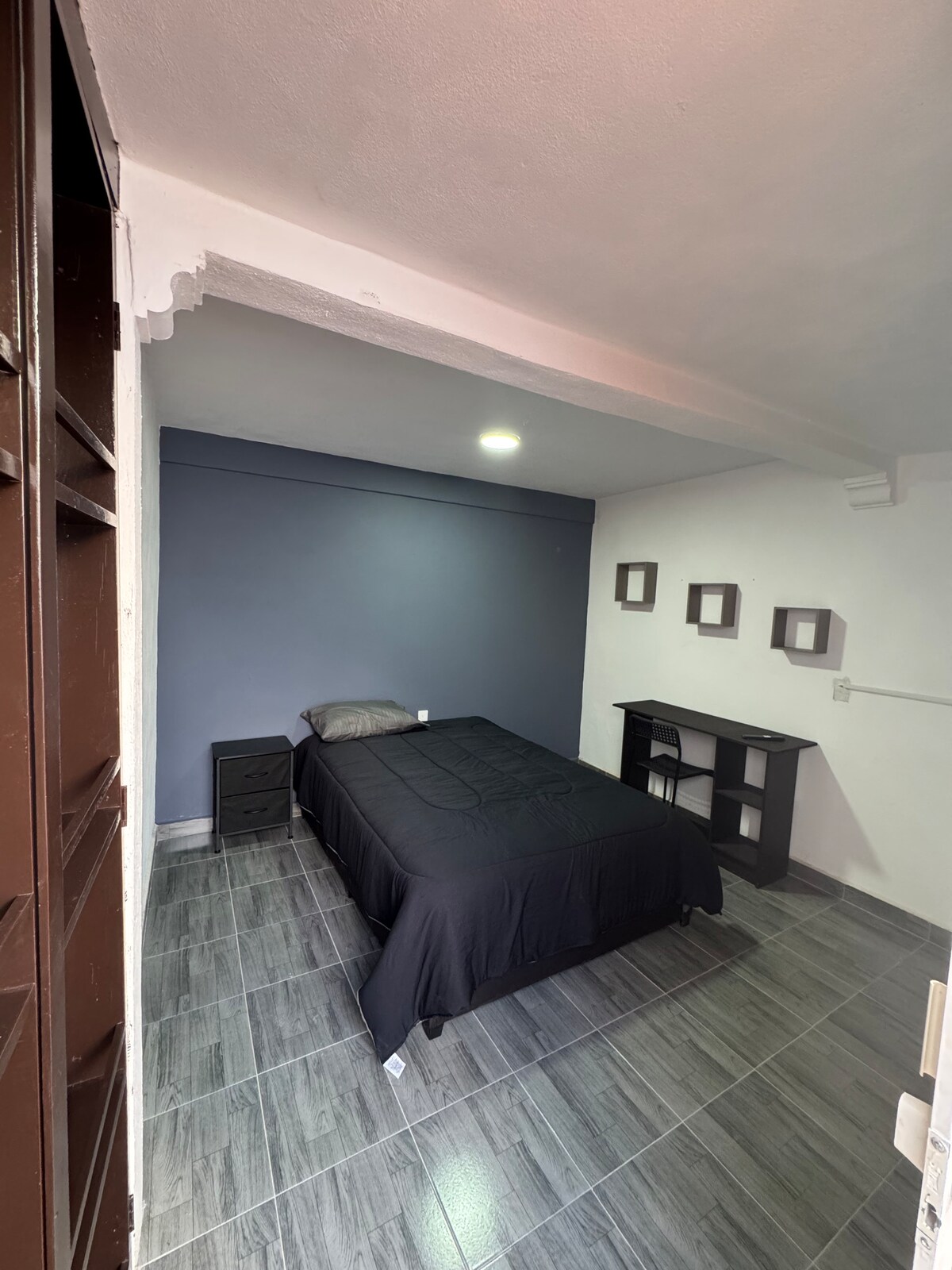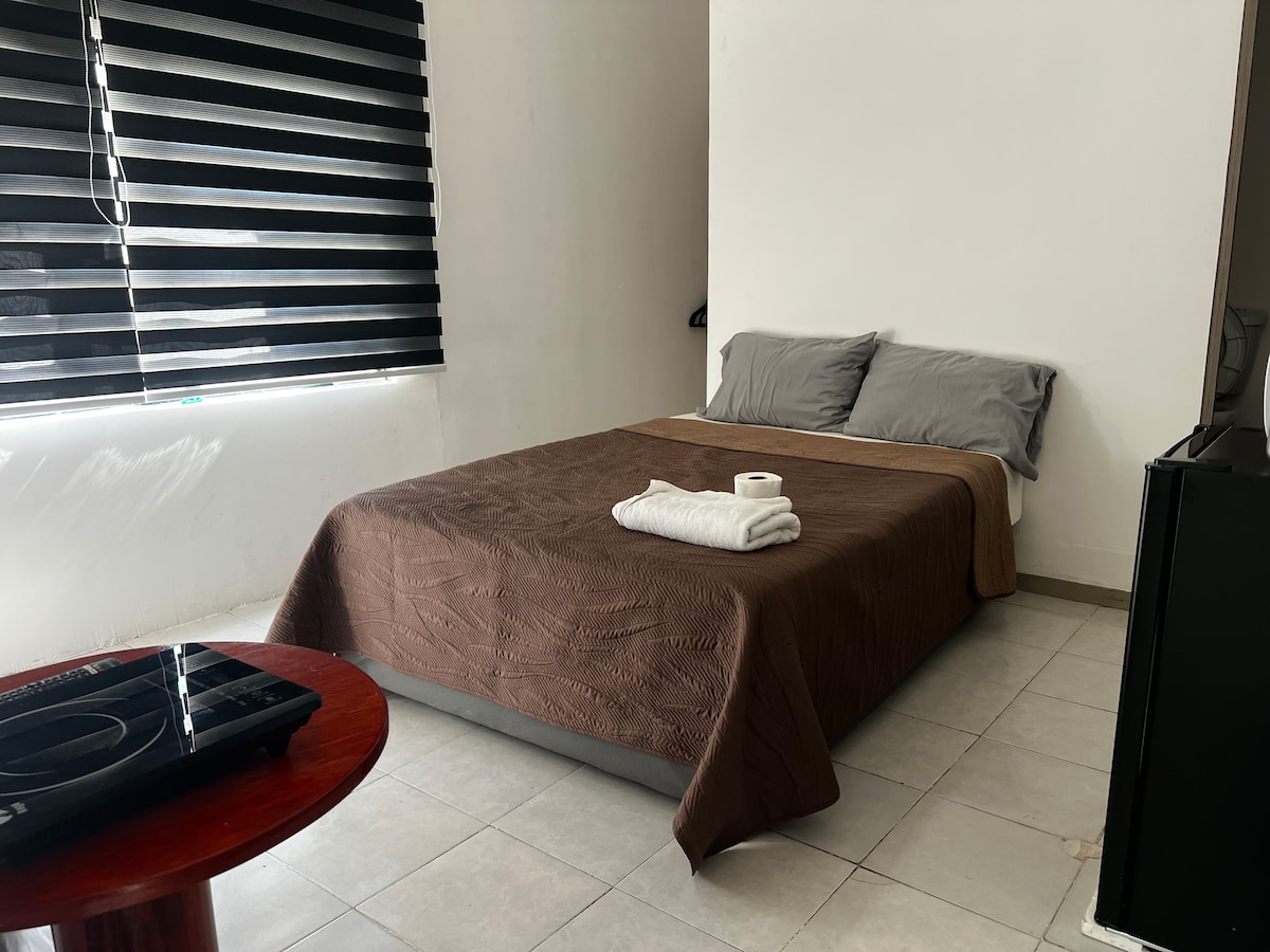 Unikt og ideelt sted for deg Helt uavhengig med dobbeltseng, fullt bad, kjøleskap og tekjøkken. Den er ideell for én eller to personer, veldig lyse rom og med trådløst nettverk som er ideelt for å jobbe hjemmefra. Nyt TV-en med kabel, strøm og varmt vann hele dagen og med god utsikt når du er i øverste etasje. Utmerket beliggenhet, med transporttjenester, en blokk fra metrobussen. Det er 20 minutter fra CAPU-TERMINALEN, Oxxo 5 minutter til fots, apotekene og markedet 3 kvartaler unna