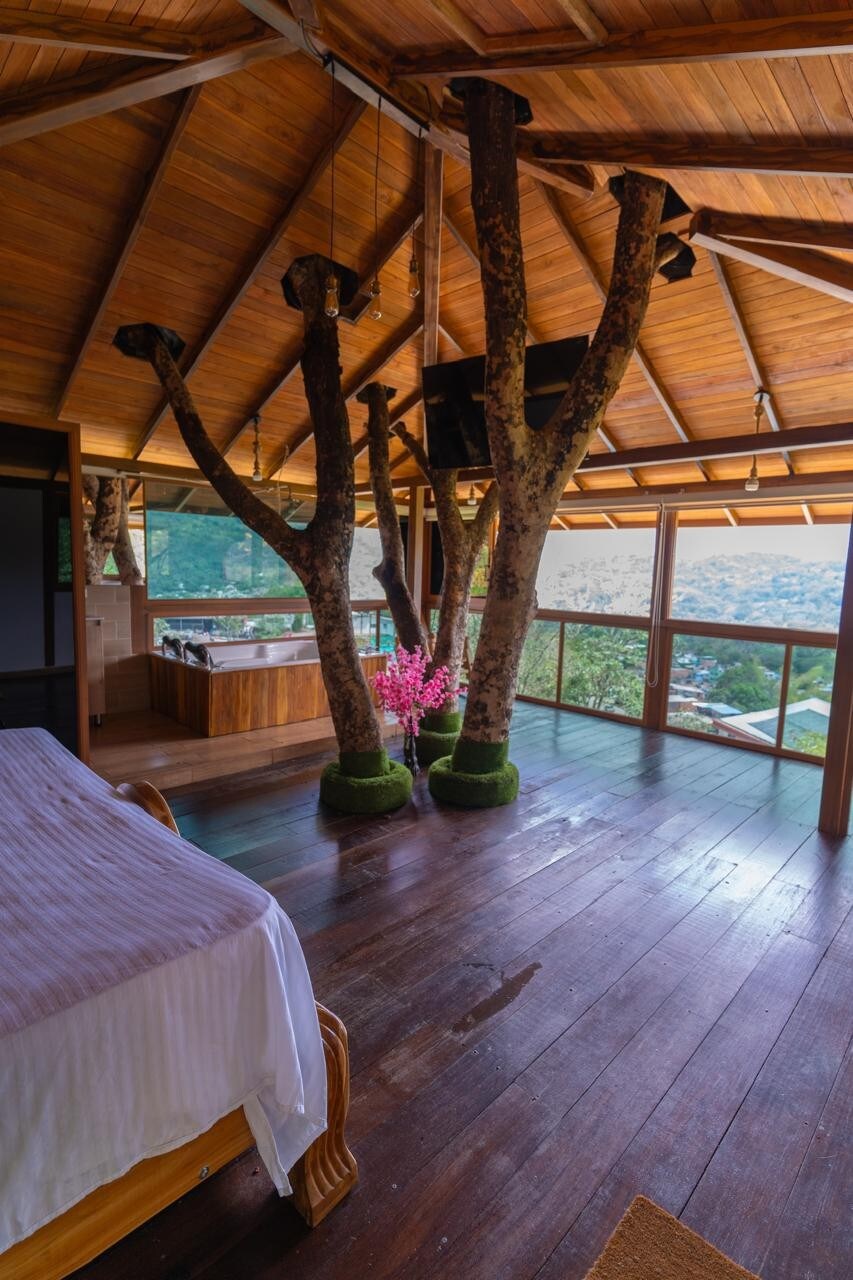 Den ultimate skjulte perlen for par. Se for deg at du slapper av i en privat og varm boblebad mens elven Otún renner rett ved siden av deg. Hytta vår er designet for dem som ønsker seg en rustikk, men vakker ferie borte fra byen, og den kombinerer den naturlige skjønnheten i La Florida med komforten av en luksusopplevelse. Den har privat parkering, frokost er inkludert, og den ligger bare 20 minutter unna det rosa området.