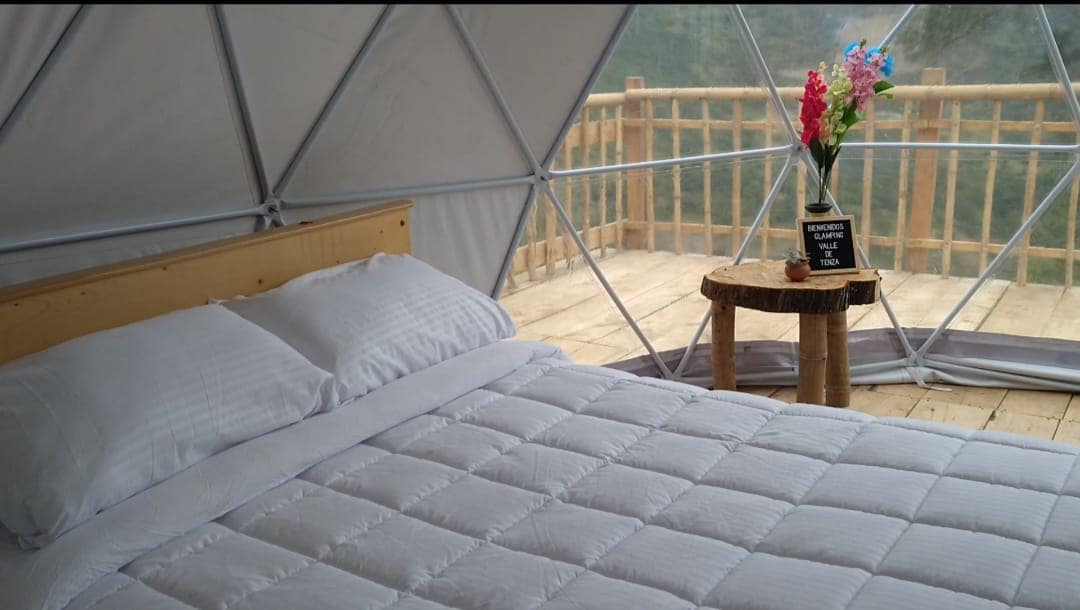 Glamping la Villa, et uforglemmelig minne. Den har en fin utsikt over landsbyen, reservoaret og soloppgangen. Det er et sted hvor du kan få kontakt med naturen, livet på landet, være i harmoni, i fred, i ro, nyte en god hvile, fornye livet ditt av god energi. Ta deg av steder av turistinteresse som Guatavita-lagunen, Muiscas-gravene, Tomine-reservoaret, termiske bad, hus på baksiden, Zipaquira osv. Saltkatedralen med et bredt utvalg av utendørs sportsaktiviteter.