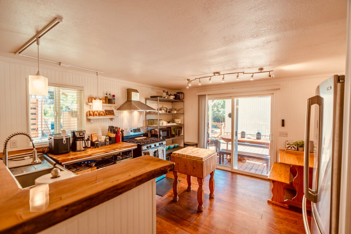 Du har reist så langt, hvorfor bli i byen? Nyt langvarig utsikt, privatliv og ro. Du er på den ene siden av vår økologiske hage og frukthage, vi er på den andre. Dette gjestehuset er utformet med dine behov i tankene, komplett med fullt kjøkken, vaskeri og badekar med klokloter. Vi bygget det for å overgå alle energieffektivitetsstandarder, så det er koselig om vinteren og kjølig om sommeren. Vi er en CA-sertifisert «grønn virksomhet». Vi streber etter å fremme en kultur for energieffektivitet og bærekraft.