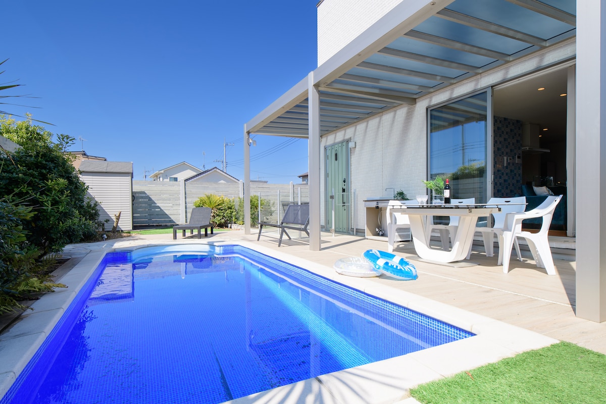 Tre sekunders gange til Otake Coast Beach i Abuta City, Ibaraki Prefecture. Ved havet. Stue med høyt tak, horisontal utsikt fra det romslige kjøkkenet med kjøkkenøy. Naturen vever mens du griller på tredekket som er forbundet med stuen. Nyt havet og stjernehimmelen. ★Stedet Ett soverom (to dobbeltsenger og en køyeseng, to sammenleggbare dobbeltsenger/kjøkken med kjøkkenøy/bad med utsikt over havet/toalett/treterrasse (med utendørs dusj). ★Fasiliteter. Badehåndkle/håndkle/tannbørste/dusjsåpe/sjampo/skyllemiddel/børste/bomullspinne/hårføner/vaskemiddel/tøymykner Gratis parkering for tre biler på ★ eiendommen. ★ Maksimalt seks gjester. Gjester som ikke bor der, er ikke tillatt. Bruk av★ griller En Weber (elektrisk grill) er installert, så bare den installerte grillen kan brukes. Ellers er det to skrivebord/seks stoler/to senger. Stekeovn og bål er forbudt. Ikke bruk den, da den vil forstyrre naboene.