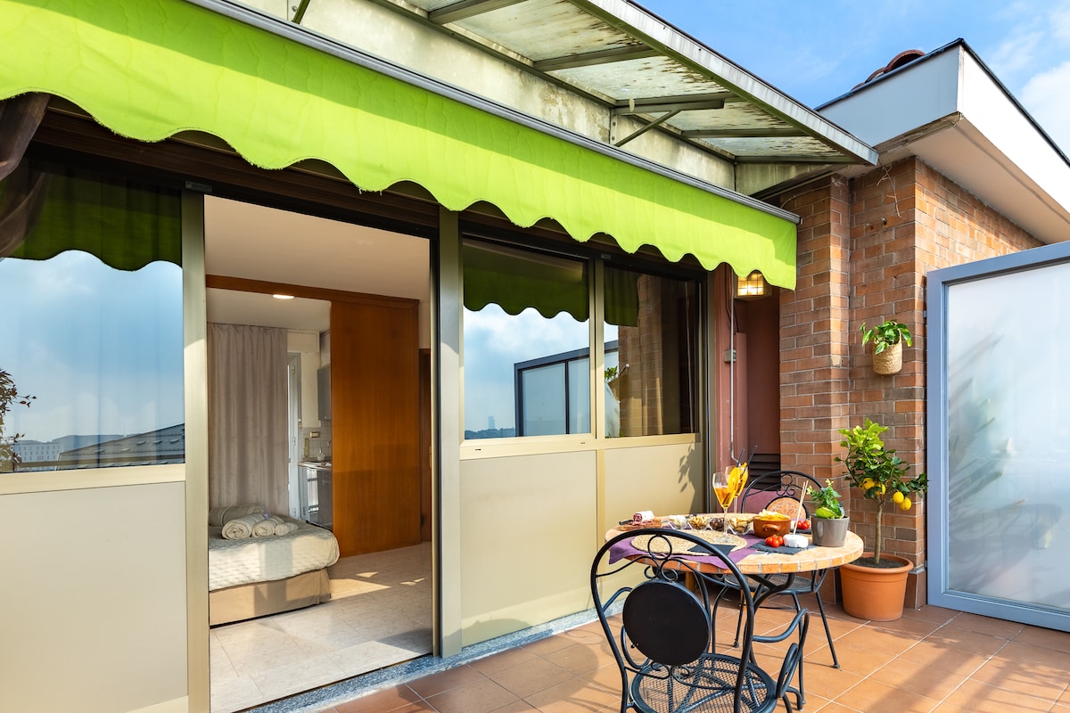 Stikk av til denne sjarmerende takleiligheten, som tilbyr en perfekt blanding av komfort og bekvemmelighet. Den ligger på toppen av bygningen og gir et fredelig tilfluktssted over byens livlige gater. Gå ut på den private terrassen og nyt den friske luften mens du nyter et rolig øyeblikk. Med sin førsteklasses beliggenhet er du bare noen minutter unna Torinos pulserende kaféer, historiske landemerker og effektive transportforbindelser. ✔ Kingsize-seng ✔ Kjøkkenkrok ✔ Terrasse ✔ Trådløst nettverk med høy hastighet ✔ Heis Les mer nedenfor!