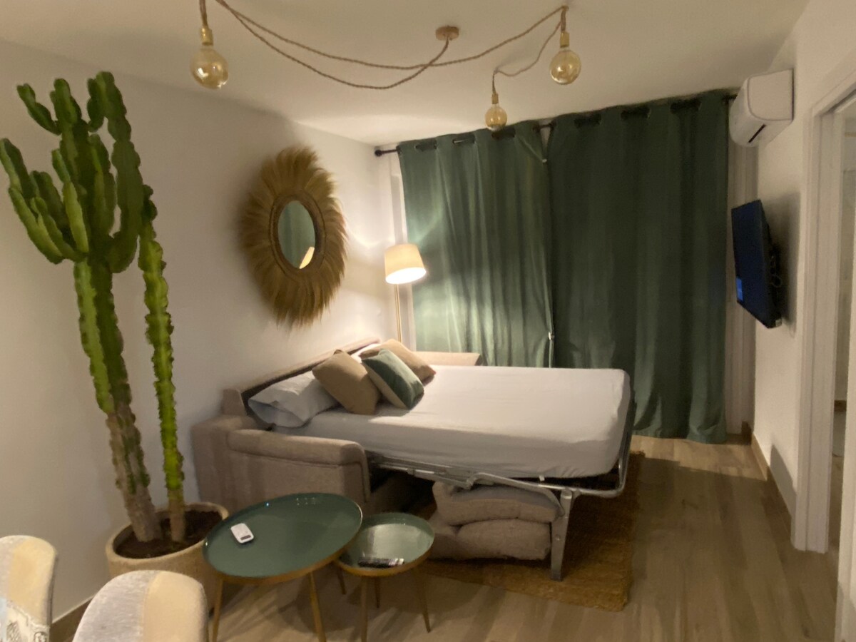 Studio på 36 m2, ideelt for par, 30 km fra Malaga, i hjertet av Costa del Sol. Ideell beliggenhet for å oppdage Andalucia og dens kultur, eller for å slappe av og nyte bassenget eller tennisbanen, de andalusiske strendene og solen i en avslappet og familiær atmosfære. Studioet er utstyrt med en sovesofa med latexmadrass, og det er utstyrt med alt du trenger for å reise lett: hårføner, sengetøy og håndklær.