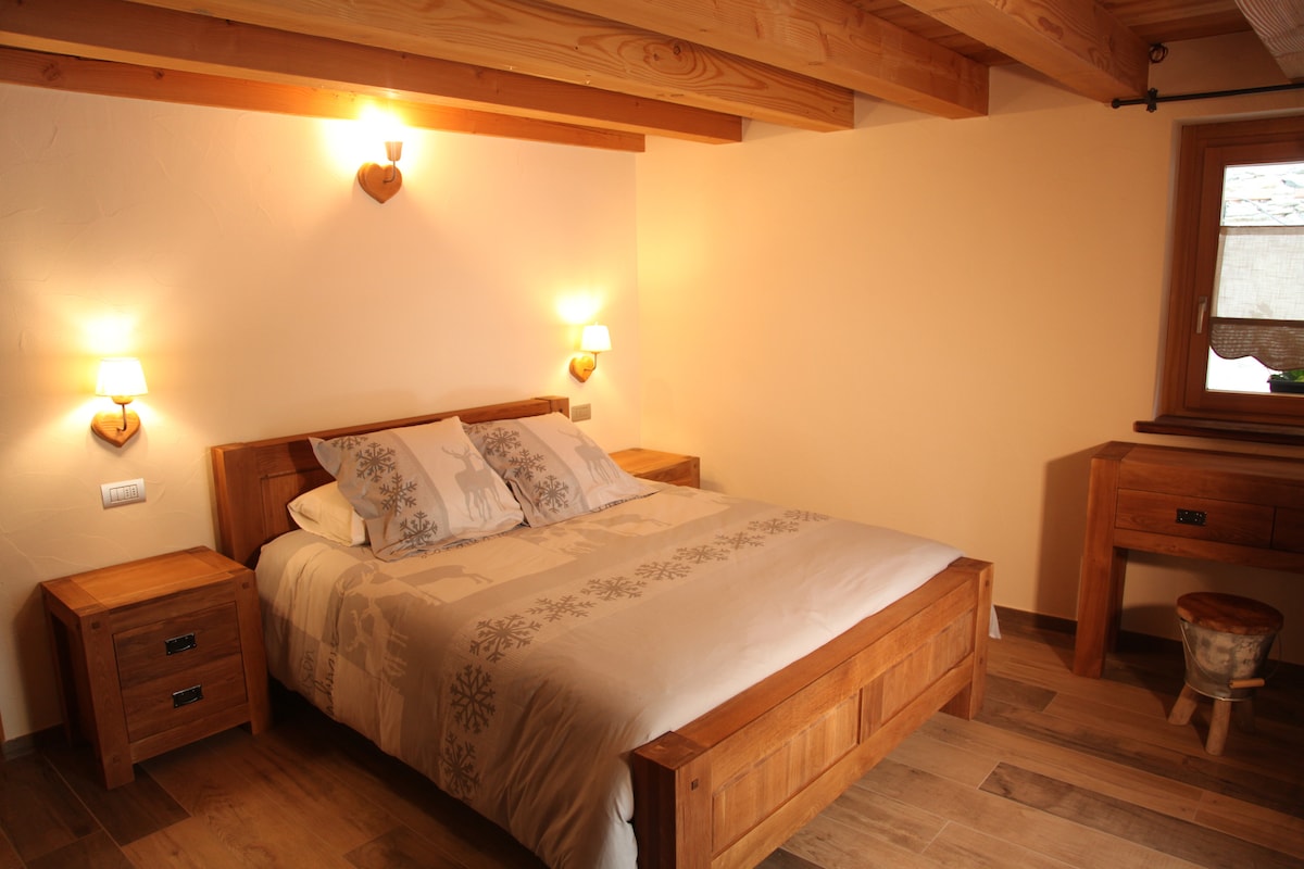Boligen ligger i første etasje i et familiehus i den øvre delen av landsbyen Chambave, omgitt av grønnsakshager og vingårder, perfekt for et avslappende opphold. B&B har et dobbeltrom og et rom med to enkeltsenger. Badet deles. Frokost serveres i stuen innen kl. 10.00, hvor du kan finne informasjon om kulturelle turistforslag i Valle d'Aosta. Overnattingsavgift i kontanter 1 € eller 0,50 € per person per natt.