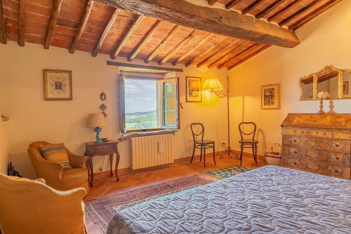 Huset har en sjelden og fortryllende utsikt over Val d'Orcia og Monte Amiata, noe som sikrer maksimalt privatliv. Interiøret gjenspeiler sjarmen til den toskanske stilen, med antikke møbler og finish laget av lokale håndverkere. Det er utstyrt med et soverom med dobbeltseng, en stor stue med et stort bord, en fullt utstyrt kjøkkenkrok, en dobbeltseng i sovesofa foran peisen i stuen. Ute gir terrassen deg mulighet til å spise med fargene i solnedgangen som bakteppe.