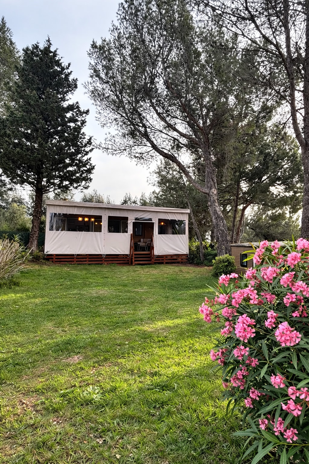 Mobilhjem med terrasse i Bormes-les-Mimosas.
