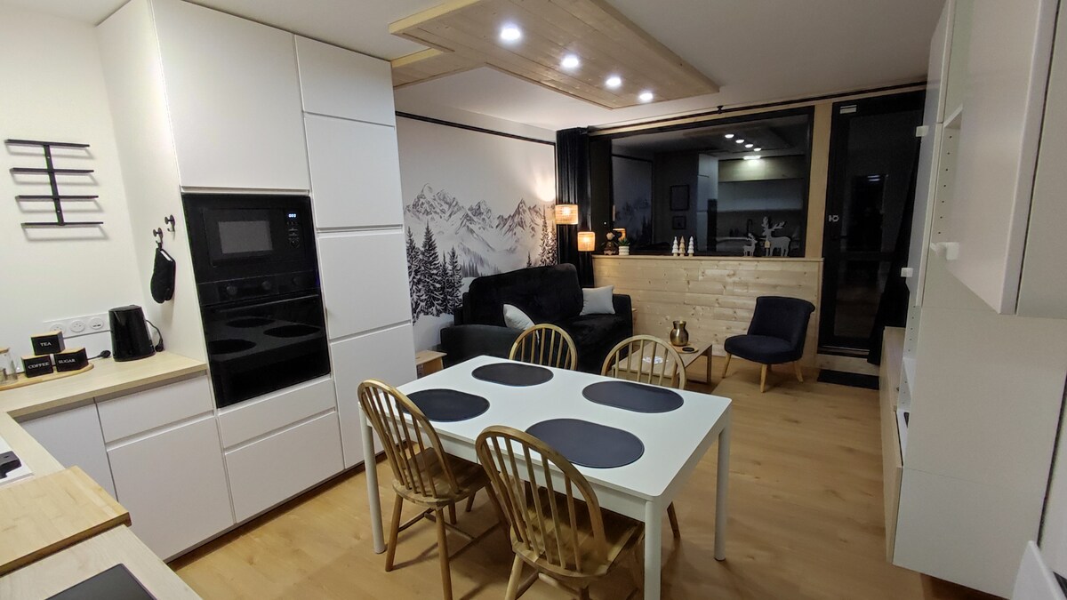 Leilighet ved foten av bakkene, ideell for en familieferie. Bolig på 46 m2, i 11. etasje med heis. Et soverom med 2 senger. En køye med køyeseng. Stuen er utstyrt med en sovesofa for 2 personer. Utstyrt kjøkken og De Longhi kombi kaffemaskin. Bad med hydromassasjedusj. TV (Netflix og fiber). Avgang og retur på ski fra boligen. I nærheten av alle fasiliteter (bakeri, minimarked, automater, restauranter, vannpark, bowling ...)