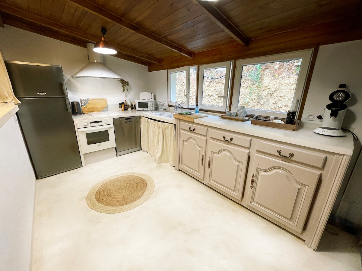 Sjarmerende gammel brødovn i bindingsverk, som ligger ved siden av en bekk, den består av: - Stue med vedovn, - Kjøkken, - I andre etasje: - dusjrom / WC tilgjengelig via en stige (se bilder), -rom med en seng 160x200 med utsikt over bekken, tilgjengelig via en stige (se bilder), Soverom og bad er ikke tilknyttet. Hagemøbler, grill, privat parkering, ved inkludert Merk deg at en annen hytte, Maison de pierres, ligger 100 m unna