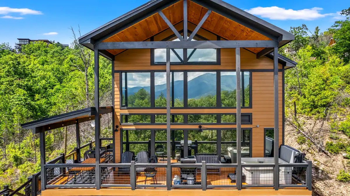 Big Sky Lodge ligger på 3,3 hektar med 360 graders utsikt over fjellene og skogen. Det er en helt ny bygning med mange stille steder å slappe av. Vi har vært oppmerksomme på designdetaljer med myke senger, dobbel ovn, eksklusiv peis, tilpassede skap, stor terrasse, stemplede terrasser og bålpanne. Kjøkkenet er fullt av fine gryter og panner og keramiske bakeformer. Hvert soverom har en TV, og det har begge stuer også. Toppen av eiendommen anses lokalt som en av de beste utsiktene i Townsend.