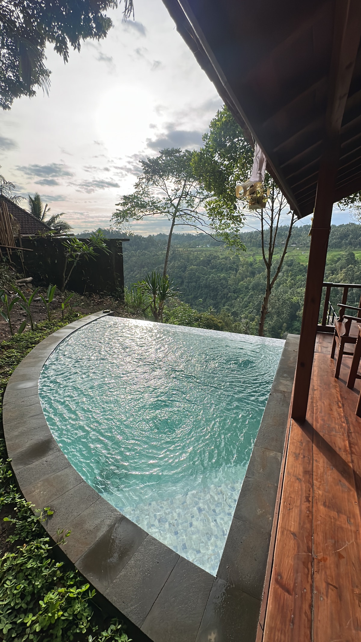 Opplev et luksuriøst opphold i det balinesiske trehuset vårt, som ligger midt i den frodige landsbygda. Denne luksuriøse hytta, som ligner et minihus, har et upåklagelig design som sømløst blander seg med naturen. Våkn opp til en fantastisk utsikt over majestetiske fjell, rett fra sengen din. Slapp av i det unike utendørsbadet, omgitt av de rolige hviskene i jungelen. Nyt herlige griller på den private terrassen, sett mot en panoramautsikt bakteppe. Dykk ned i essensen av Bali – hvor luksus møter naturen.