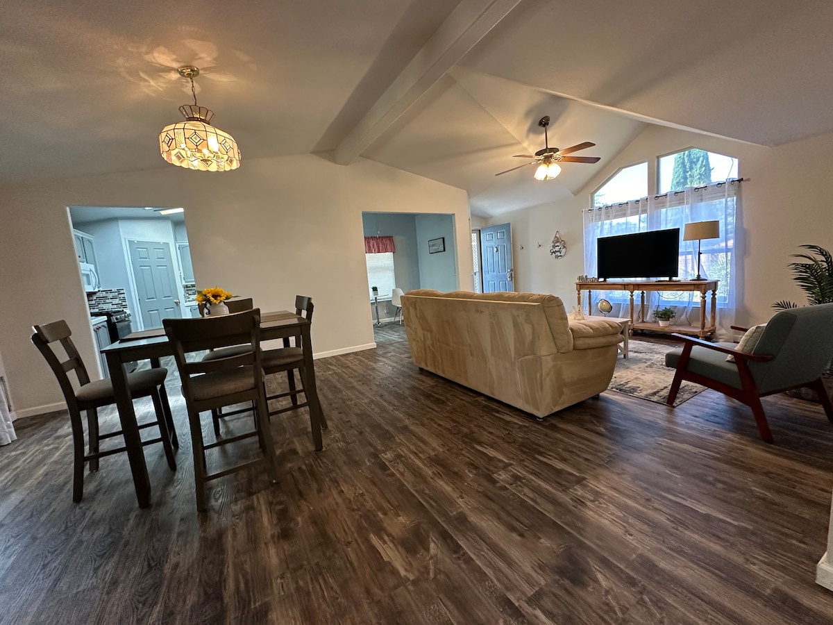 Sentralt beliggende tilfluktssted! Nyt uovertruffen bekvemmelighet og komfort i vårt vakkert utnevnte hjem, perfekt egnet for familier, reisende og eventyrsøkere! Slapp av med stil med en egen inngang og eksklusive møbler for å slappe av og lade opp. Minutter fra Bass Pro Shops og innen kjøreavstand til fjellkjeden og den fantastiske Central Coast. Enten du søker utendørs eventyr eller bare et avslappende tilfluktssted, er hjemmet vårt det perfekte knutepunktet for ferien din i California!