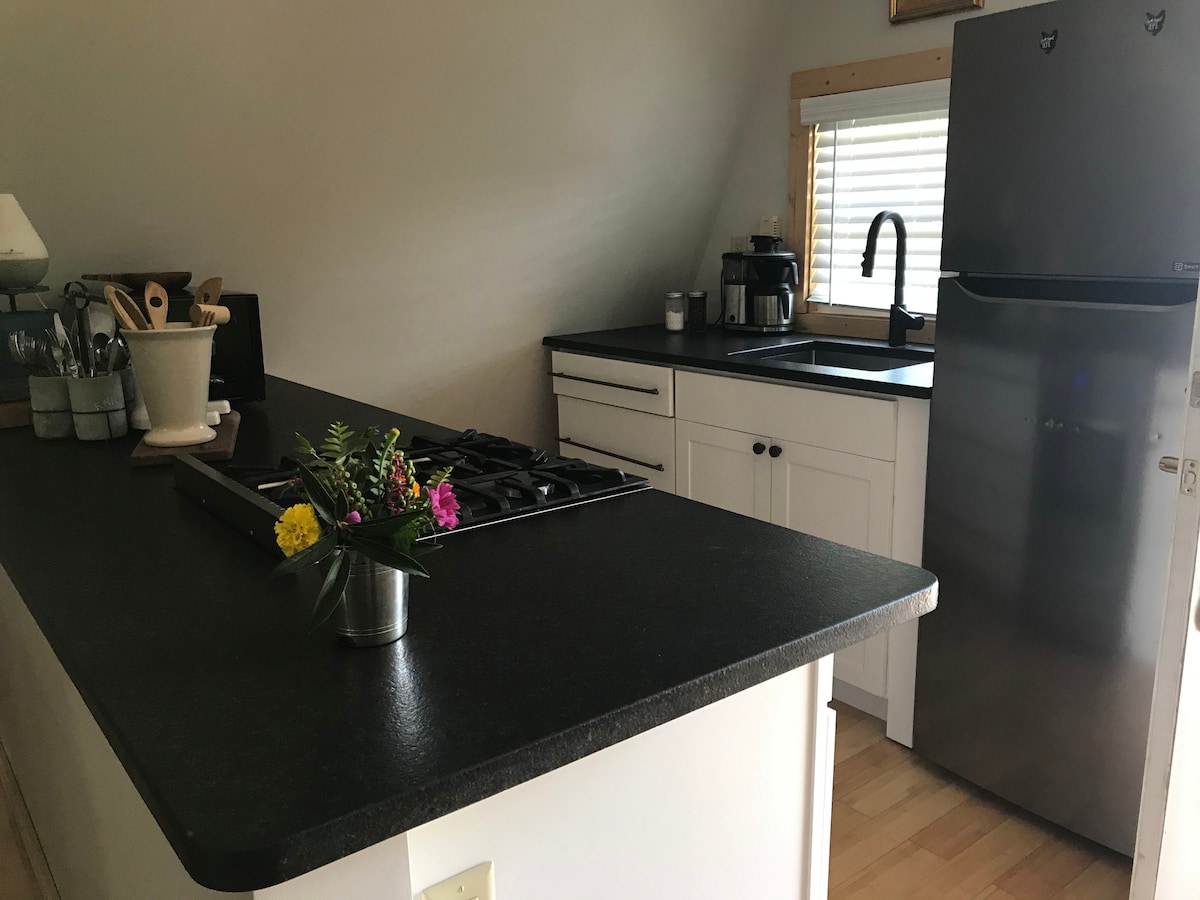 En tidligere låve slått på massasjestudio til gjestehus har dette stedet sett mange forskjellige bruksområder. Dette stedet vil være en flott baseleir for eventyrene dine i Pisgah National Forest og DuPont State Park. Kjøkkenet har et fullt fungerende gassområde og stekeovn og kjøleskap i leilighetsstørrelse. God plass til å lage måltider om dere heller vil bli i stedet for å spise. Det er en rampe til inngangsdøren slik at du kan trille fjellsyklene rett inn for natten hvis du ønsker det.