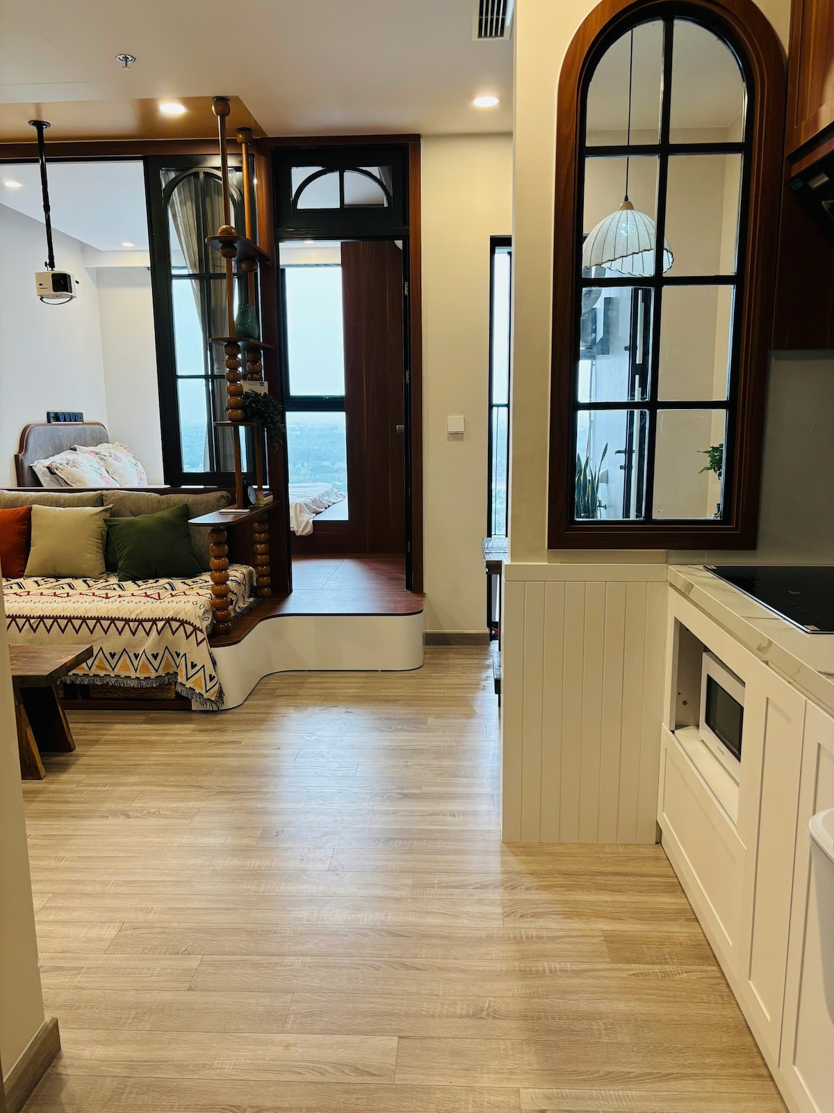 Denne 82 m² store leiligheten ligger bortgjemt i Hanoj s franske kvarter, og tilbyr en elegant blanding av grøntområder og minimalistisk design. Stedet er inspirert av japansk estetikk, og flyter mykt fra rom til rom, fylt med naturlig lys, myke teksturer og beroligende toner. En romslig balkong med frodige planter inviterer til sakte morgener og fredelige kvelder. Hver detalj er bevisst – et rolig tilfluktssted i byen.