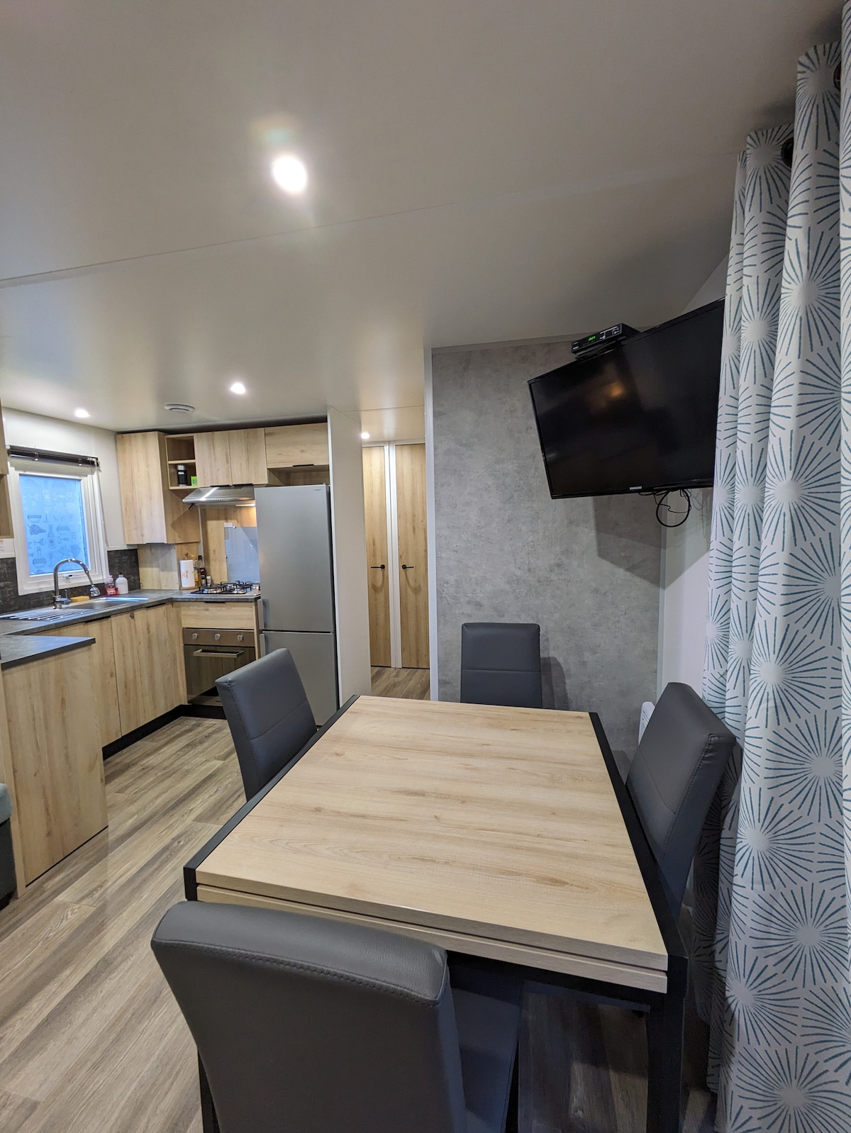 Ny mobilhjem (2023), tre soverom, seks personer. Perfekt beliggenhet for å utforske den vakre regionen vår: Pont-Aven, Trégunc, Trévignon, Concarneau, Quimper, Locronan osv., de fantastiske strendene i området og de storslåtte kyststiene. Opptil seks Fun Pass-er er inkludert for enhver reservasjon på minst syv netter (til en verdi av € 34 til € 68 per uke per person, avhengig av tidspunktet på året). Gratis internettilgang. Hagemøbler, solsenger, parasoll, grill. Halvt dekket terrasse.