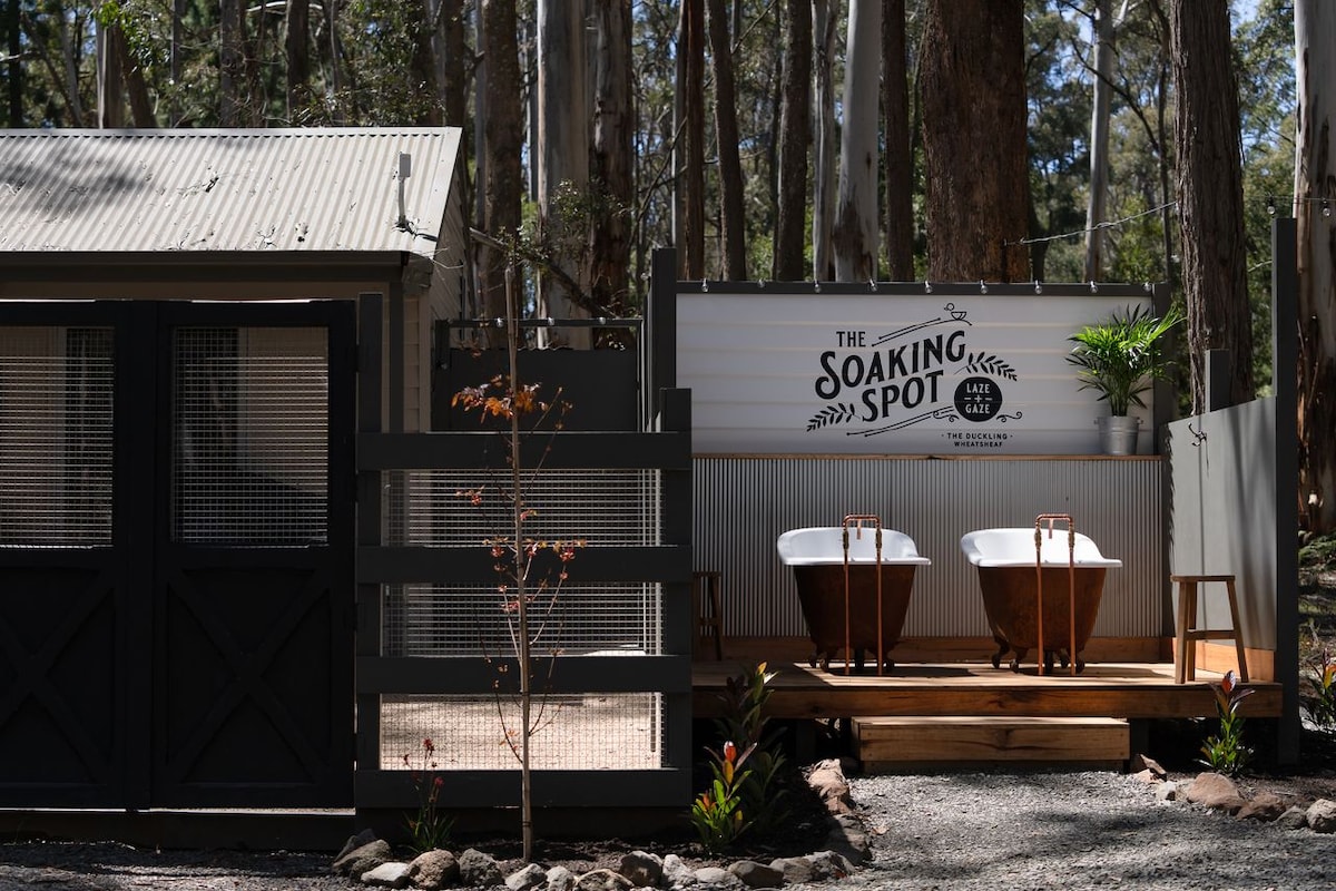 Den stemningsfulle hytta vår ligger blant eukalyptustrærne, omgitt av fuglesang. Oppkalt etter Gububurras (Kookaburras) som deler eiendommen med oss, er det bare ti minutters spasertur til Mount Macedon-landsbyen for kaffe eller en kort kjøretur for å finne vingårder, landsbymarkeder og skogstier. Alternativt kan du i de kjøligere månedene krølle deg sammen ved peisen og lese eller nyte utsikten fra terrassen ved bålplassen. Den beroligende effekten Guruburra har på gjestene våre er nesten umiddelbar.