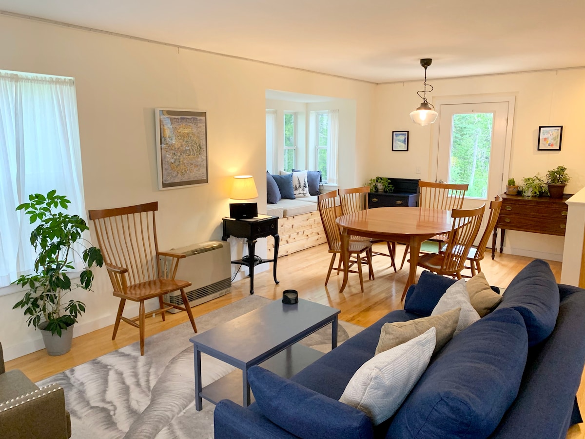 Kom deg bort til vårt fortryllende skogsområde på MDI, omgitt av Acadia nasjonalpark. Hjemmet vårt ligger avsidesliggende i enden av en grusvei, og grenser til den 800 hektar store Kitteridge Brook-skogen. Opplev roen med fem kilometer private stier rett utenfor døren. Hjemmet vårt med tre soverom er ideelt for å utforske Acadias magi, og har et åpent kjøkken, stue og spiseplass, samt en romslig terrasse. Perfekt for store familier eller to små familier. Opplev den ultimate oasen i hjertet av naturen.