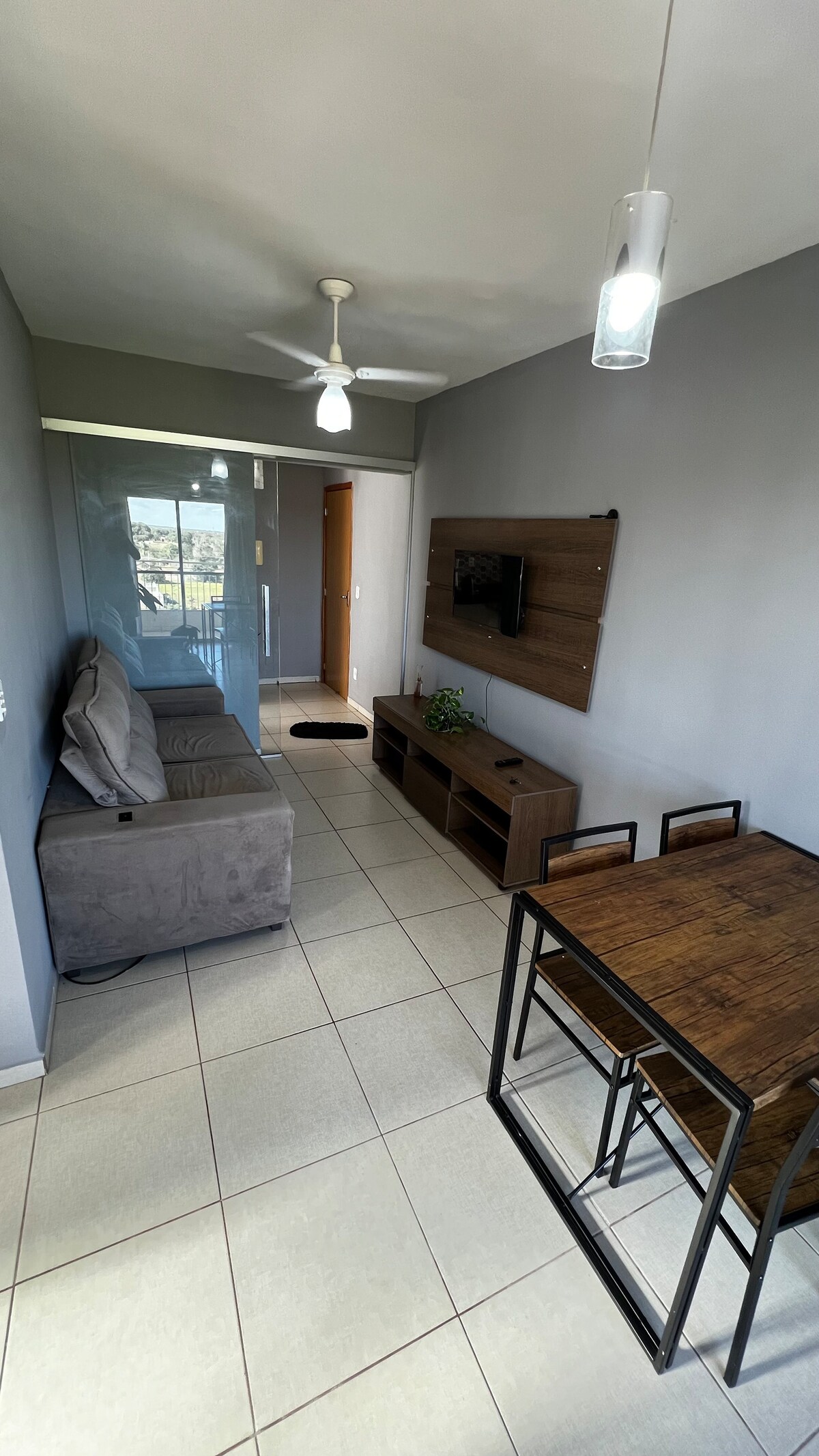 Aconchego og praktiskhet! Stedet har plass til opptil fire personer, én suite med dobbeltseng og klimaanlegg, ett soverom med enkeltseng og klimaanlegg, stue med uttrekkbar sofa, kjøkken, sosialt bad, garasje for to biler. Beliggenheten er privilegert: nær et supermarked, bakeri, restaurant, pizzeria og stasjon med bekvemmelighet. 1,8 km fra busstasjonen, 4,9 km fra flyplassen og 4,4 km fra kjøpesenteret – Ideell for hvile, reise eller arbeid, kombinerer komfort og enkel tilgang.