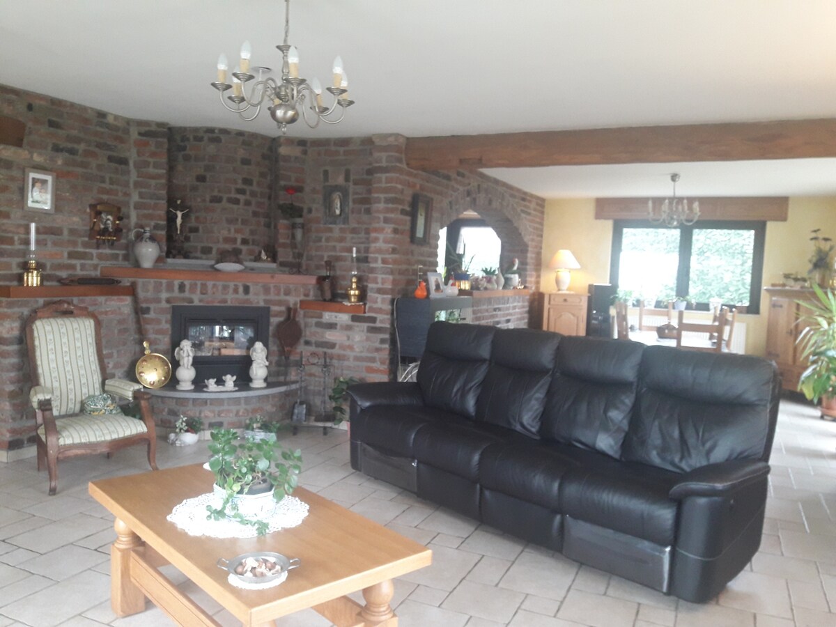 Nous vous accueillons dans notre maison où vous disposerez d'une chambre spacieuse et d'une salle de bains privée communiquant avec la chambre . Petit déjeuner inclus avec des produits frais faits maison. La propriété est sécurisée par un portail. La maison située au pied de la Redoute et près de nombreux GR dispose d'un environnement calme au sein du village. A proximité: Ninglinspo, grottes de Remouchamps ,circuit de Francorchamps, Spa et ses thermes. Accès à internet gratuit.