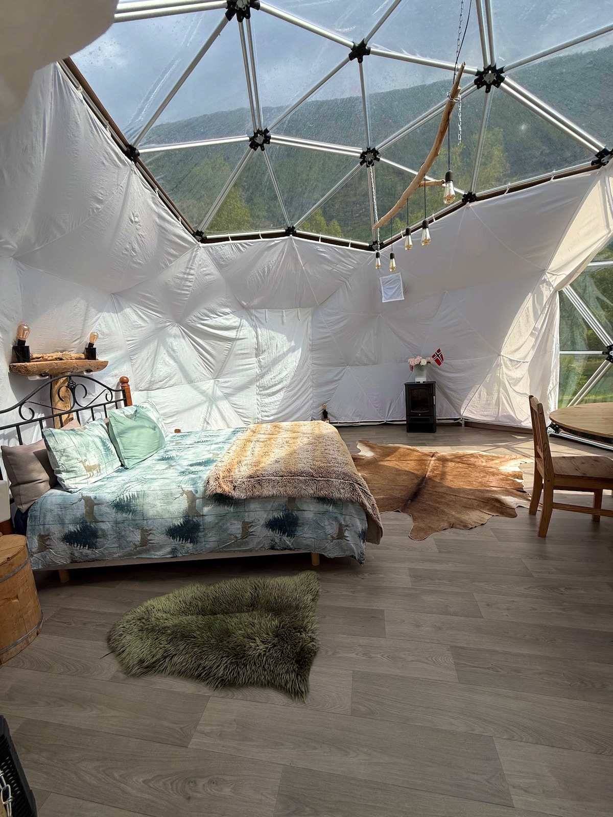 Er du på besøk i mektige Romsdalen og ønsker en unik opplevelse hvor et lite stykke komfort møter rå, norsk natur? Nå har du sjansen. Nyt kaffekoppen til skuet av høye tinder, stjernehimmel og morgensolen som ønsker både deg og dyrelivet, som er tett på, en god dag. Kuppelen ligger usjenert og idyllisk til like ved lakseelva Isa. Her finner man sittegruppe, bålplass og solsenger. Alt for at du skal få et best mulig opphold ved Isa eye. Velkommen!