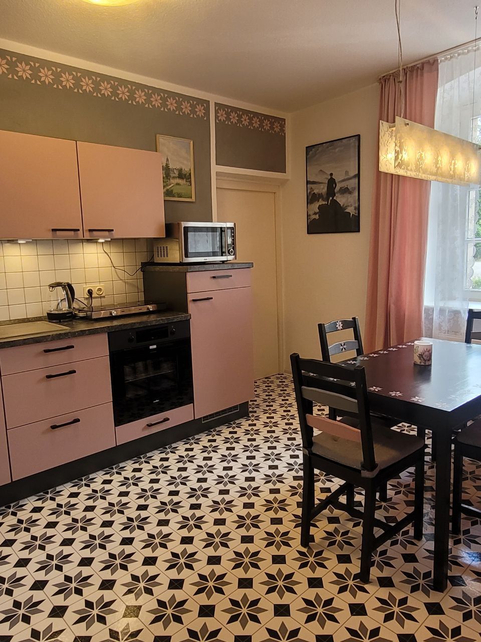 Leiligheten på ca. 55 kvm ligger i første etasje med egen inngang. Utstyrt med walk-in dusj, boxspring-seng 180x200 m, flatskjerm-TV, stor sovesofa for to barn eller 1 voksen, ikke egnet for 4 voksne, elektrisk mørkleggingsrullgardin, samt rask gratis Wi-Fi. Et fullt utstyrt lite kjøkken med alt utstyr du trenger, inkludert en spiseplass for 4 personer. De stilige møblene og fargene inviterer deg til å slappe av og koble av.