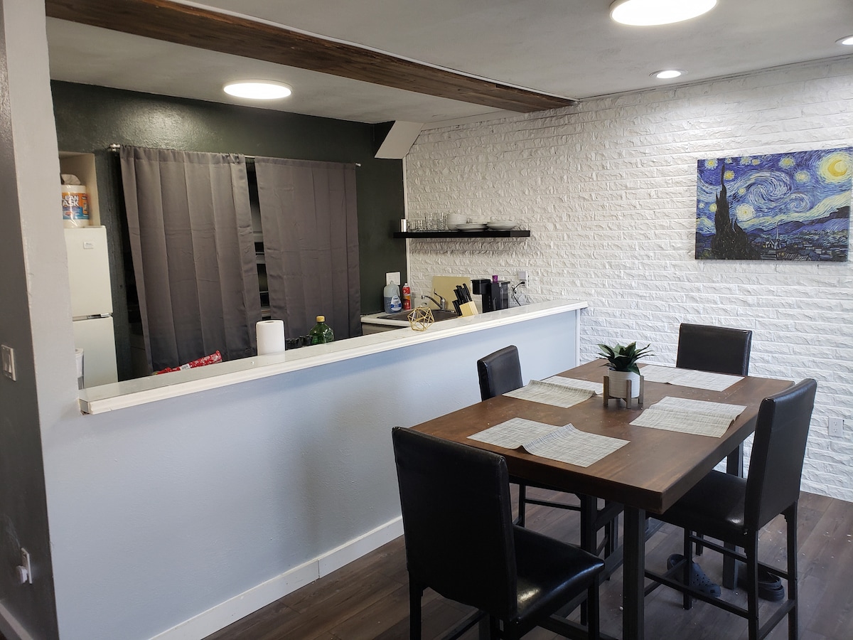 Åpen planløsning. King-suite med arbeidsstasjon. Privat garasje. Inngjerdet bakgård. Hardtop-baldakin på terrassen. Romslig soverom i andre etasje. Dyrevennlig. Kaffe-/tebar. Trådløse dørlåser. Trådløst nettverk tilgjengelig. INGEN FESTER TILLATT. Kjæledyr tillatt med gebyr på $ 0 dollar per kjæledyr.