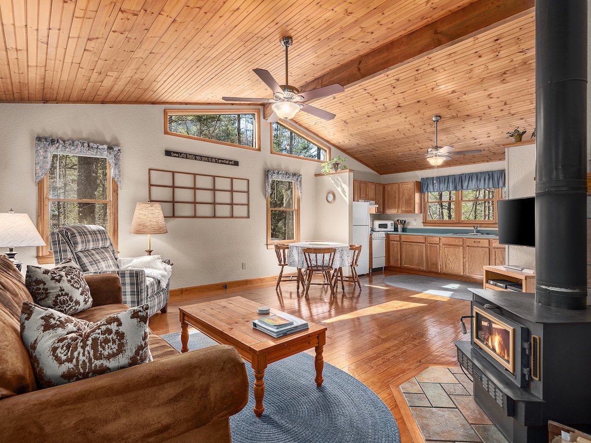 Dette moderne tømmerhuset er den perfekte utflukten hvis du ser etter fred, ro og krystallklar stjernetitting! Wilderness Lodge ligger på 200 private hektar, og er et privat, avsidesliggende og koselig tilfluktssted. Under oppholdet ditt vil du være de eneste leietakerne - bruk gjerne (nytt i 2023!) boblebadet, salong på terrassen i nærheten av bekken, eller utforske eiendommen. Kjøkkenet er fullt utstyrt, og huset har vaskemaskiner i hovedetasjen. Det er en liten butikk få minutter unna.