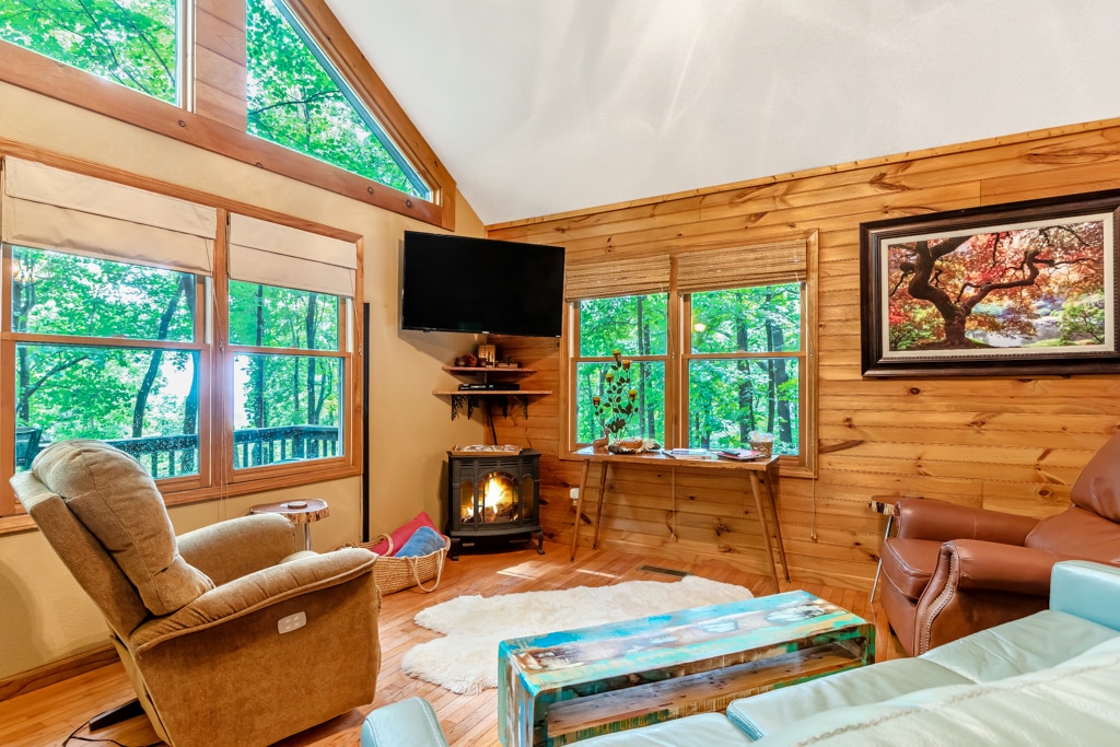Sunny Mountain Cottage•Kingsize-senger•Hunder•En mile til byen