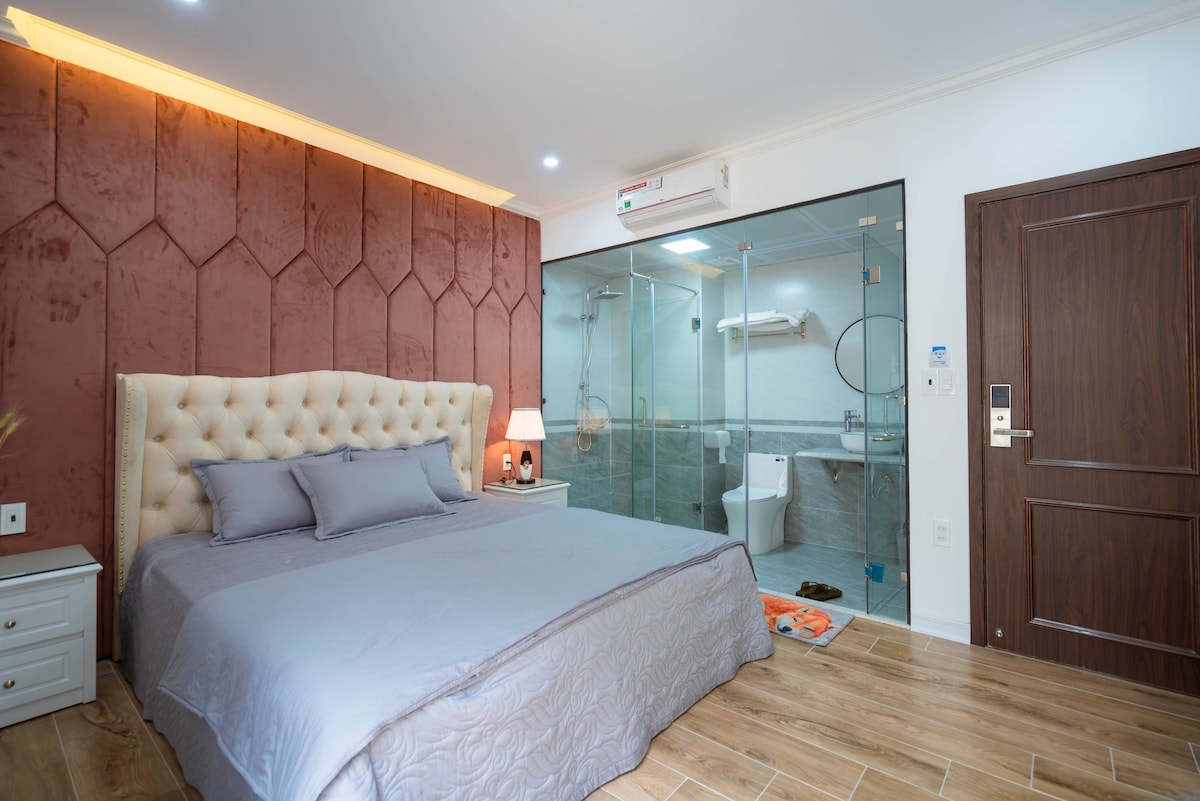 Vår villa med 6 soverom og 5,5 bad med aircondition ligger bare 1 minutts gange til Bai Chay-stranden, med enkel tilgang til toppbesøkte turiststeder (Halong International Cruise Port, Sunworld Halong Complex, Ha Long Night Market,..) Vi tilbyr høyt privatliv med fleksible søvninnstillinger for turen din med familier, venner eller bedriftsopphold med et eksklusivt preg og en rolig kyststemning. Privat transport Dagscruise i Halong. Billetter til Sunworld Park. Cateringtjenester. Catba reiseruter.