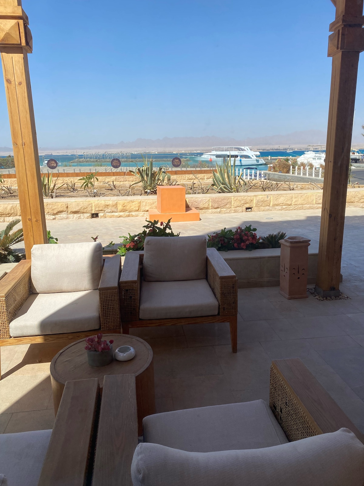 Nydelig toppleilighet med en romslig stue, spiseplass, kjøkken og dobbeltsoverom. Den har en av de beste utsiktene i Soma Bay, med en panoramautsikt over havet og golfbanen. Raskt trådløst nettverk og et dedikert kontorområde med skrivebord og ergonomisk arbeidsstol gjør det til et perfekt sted å jobbe eksternt. Bare minutter fra bryggen og Breakers-hotellet, ligger det i Soma Breeze-leilighetene. Inkluderer tilgang til basseng og strand.