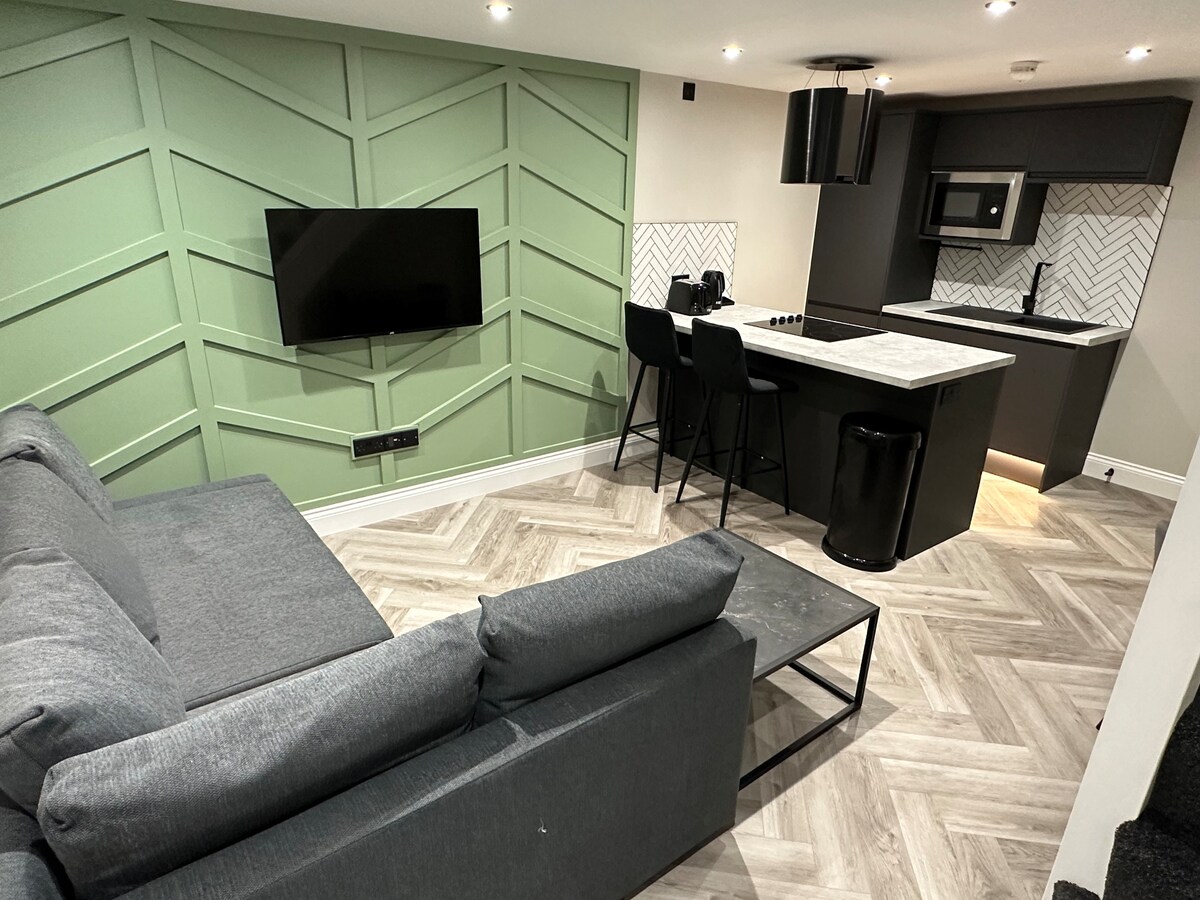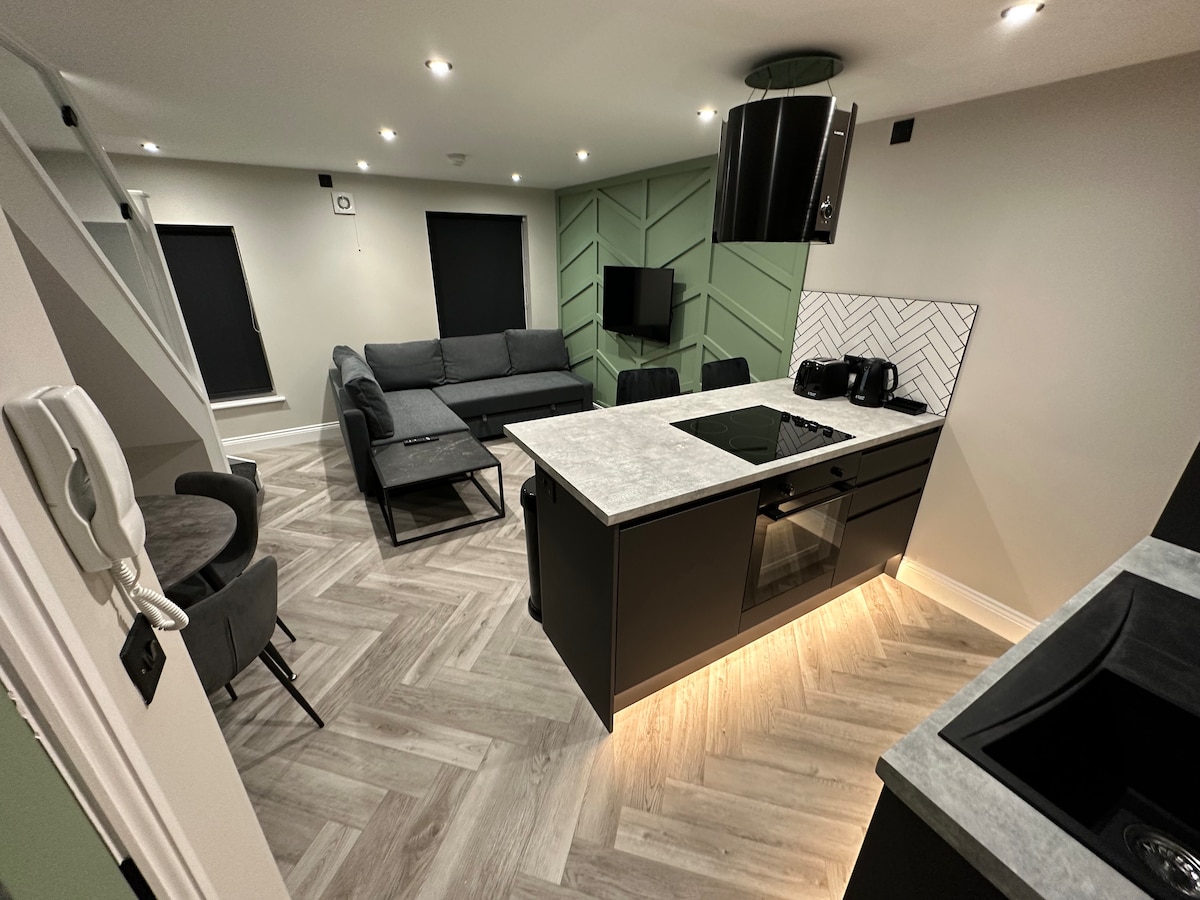 Vi er så glade for å kunne presentere deg med våre nybygde luksusleiligheter (2023!) Denne leiligheten har 1 soverom, 2 dobbeltsenger og 1 sovesofa. Smart-TV på soverommet og i stuen. Fullt utstyrt kjøkken med kokeutstyr for å imøtekomme 6 gjester. Ligger bare 1 mile fra Anfield Stadium og 1,2 miles fra Liverpool sentrum. Gratis kaffe og te ved ankomst. Gratis på gateparkering. Superraskt trådløst nettverk.