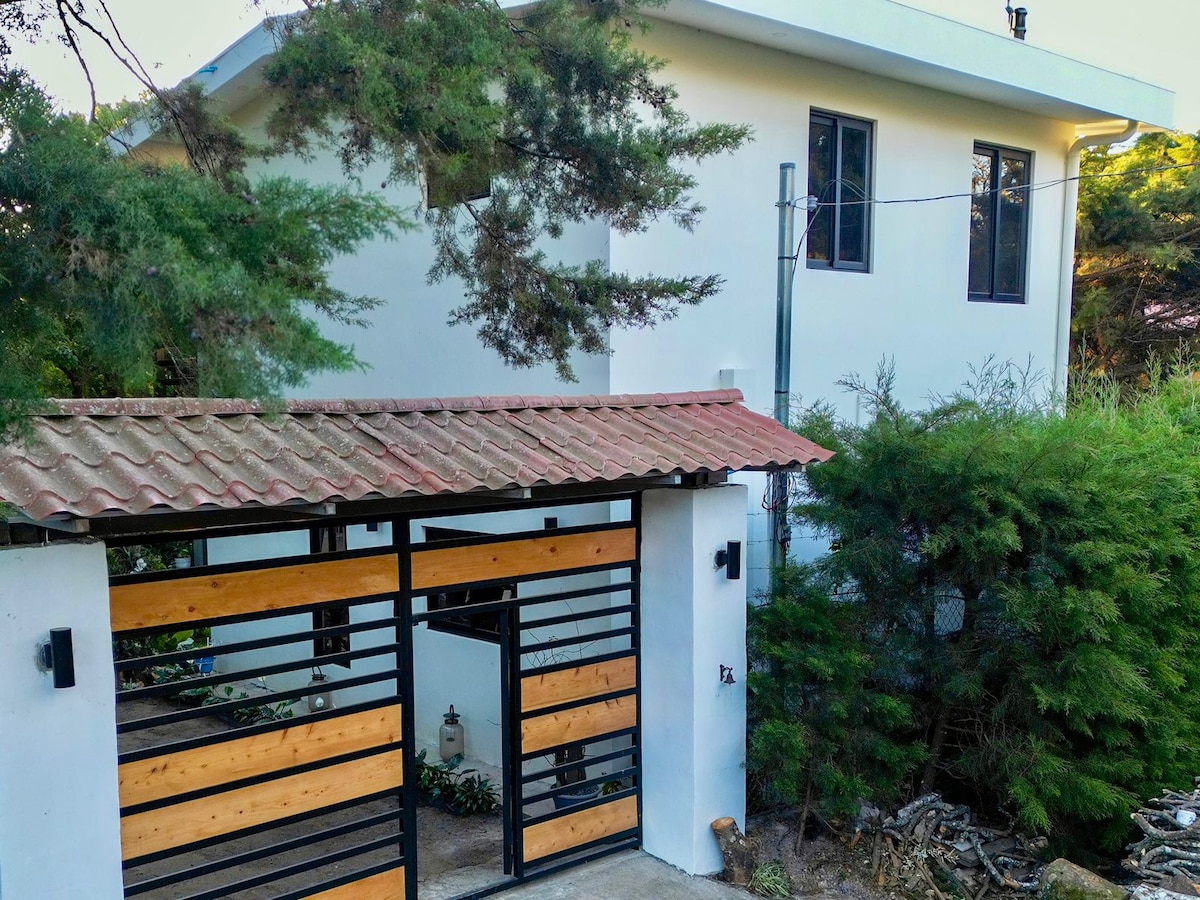 Slapp av med familien i dette vakre, rolige og koselige tilfluktsstedet, og tilbyr et behagelig klima, frodige hager og fantastisk utsikt over fjellkjeden Apaneca. Huset er fullt utstyrt og har et hovedsoverom med en queensize-seng, pluss to ekstra soverom, hvert med to enkeltsenger som gir rikelig plass til opptil seks gjester. Hjemmet er innredet med kjøkken, kjøleskap, kaffemaskin og mange andre fasiliteter, inkludert TV og Starlink Internett.