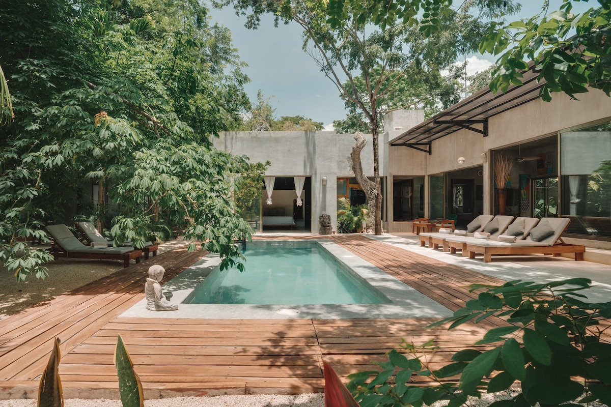 Jungelloft med basseng nær stranden, sentrum og cenoter!