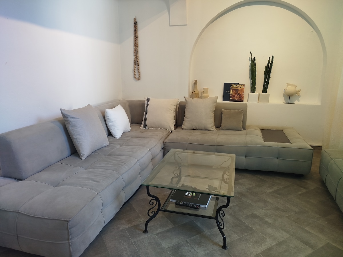Møblert leilighet i første etasje i La Marsa Corniche. Den har en lys stue, tre soverom med dobbeltsenger, et fullt utstyrt kjøkken, et dusjrom og toaletter. Eiendommen har også en fin hage. Ideell beliggenhet tre minutters gange fra stranden og kun ett minutt fra sentrum av La Marsa Plage, med restauranter, kaféer og butikker innenfor gangavstand. Perfekt for et komfortabelt opphold nær sjøen.